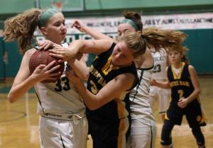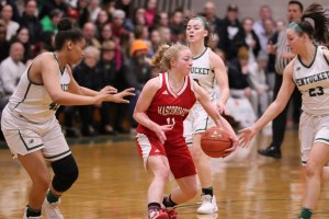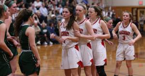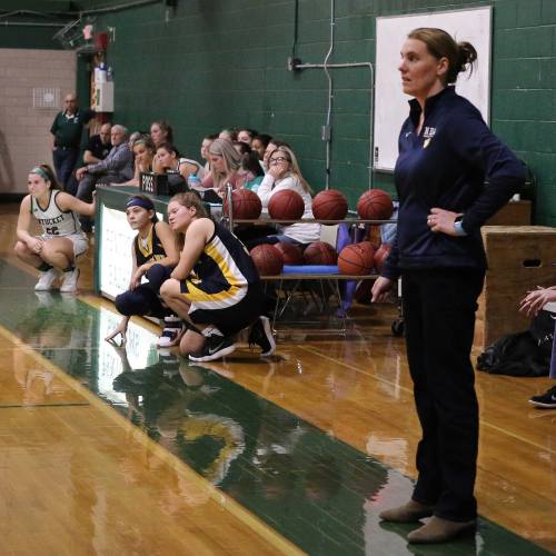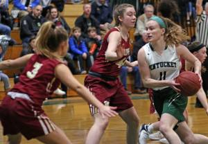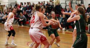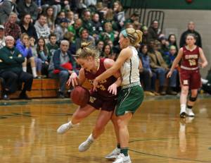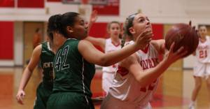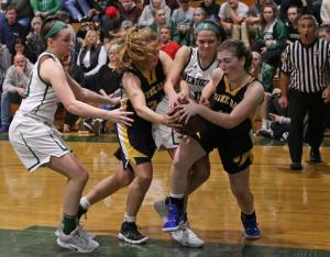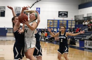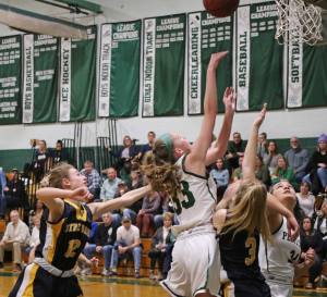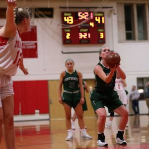 The Hornets’ streak of points continued with Ali Grasso setting up Nasha Arnold for a layup. Lauren Sullivan then had an old-fashioned 3-point play and Sarah Gerber added a free throw.