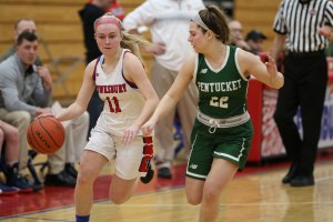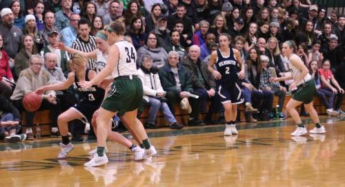 Credit the ballhandling and passing of senior guard Ali Grasso for much of that. She saw the court really well today. When trapped, she’d find open teammates. Guarded one-on-one, she would bring the ball up without losing it.
