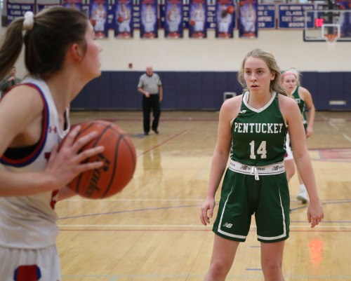 A Mackenzie Currie layup followed and, after Ali Grasso missed the front end of a one-and-one, Angelica Hurley nailed a long 3-pointer. Pentucket was back within a possession with fifteen seconds left.