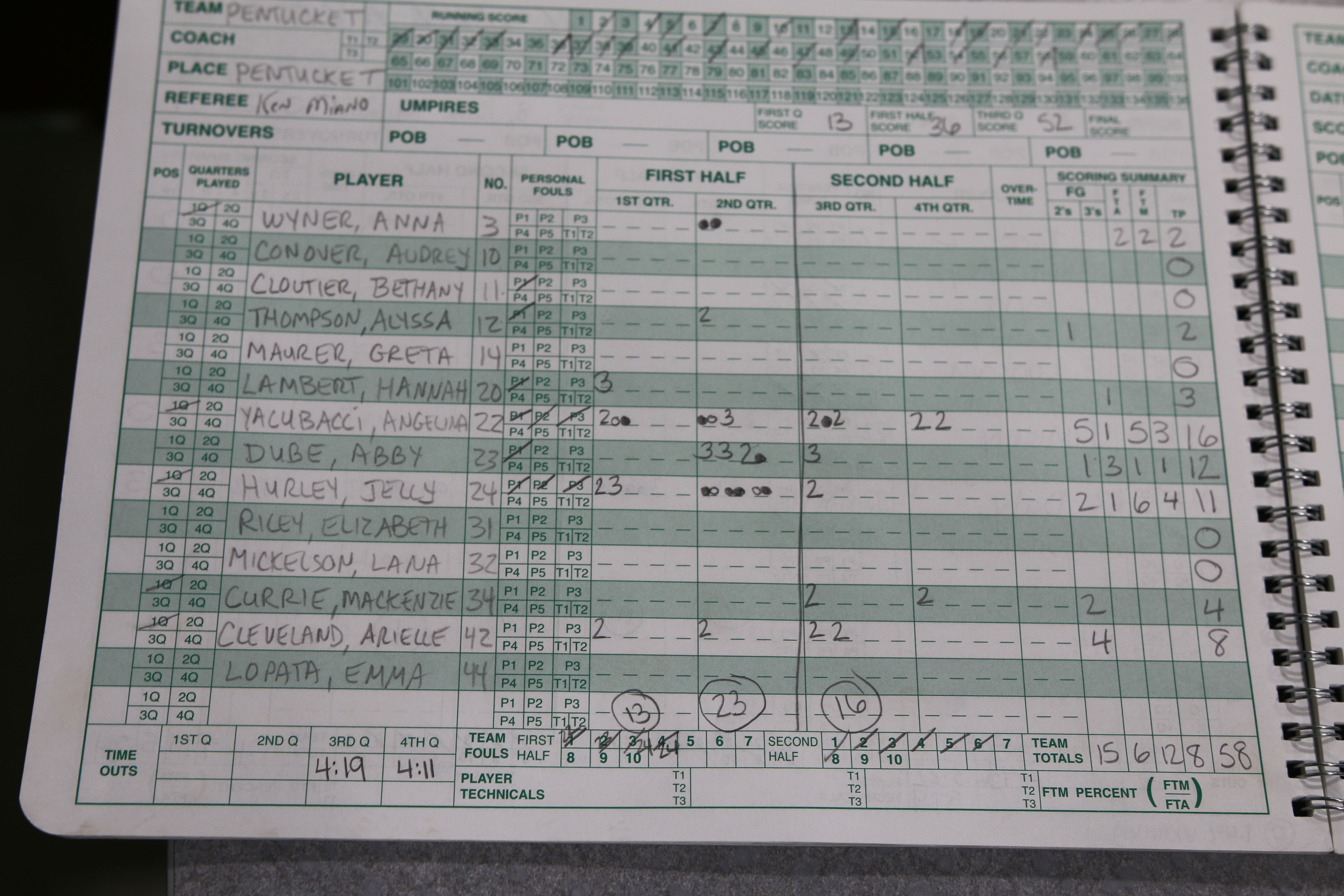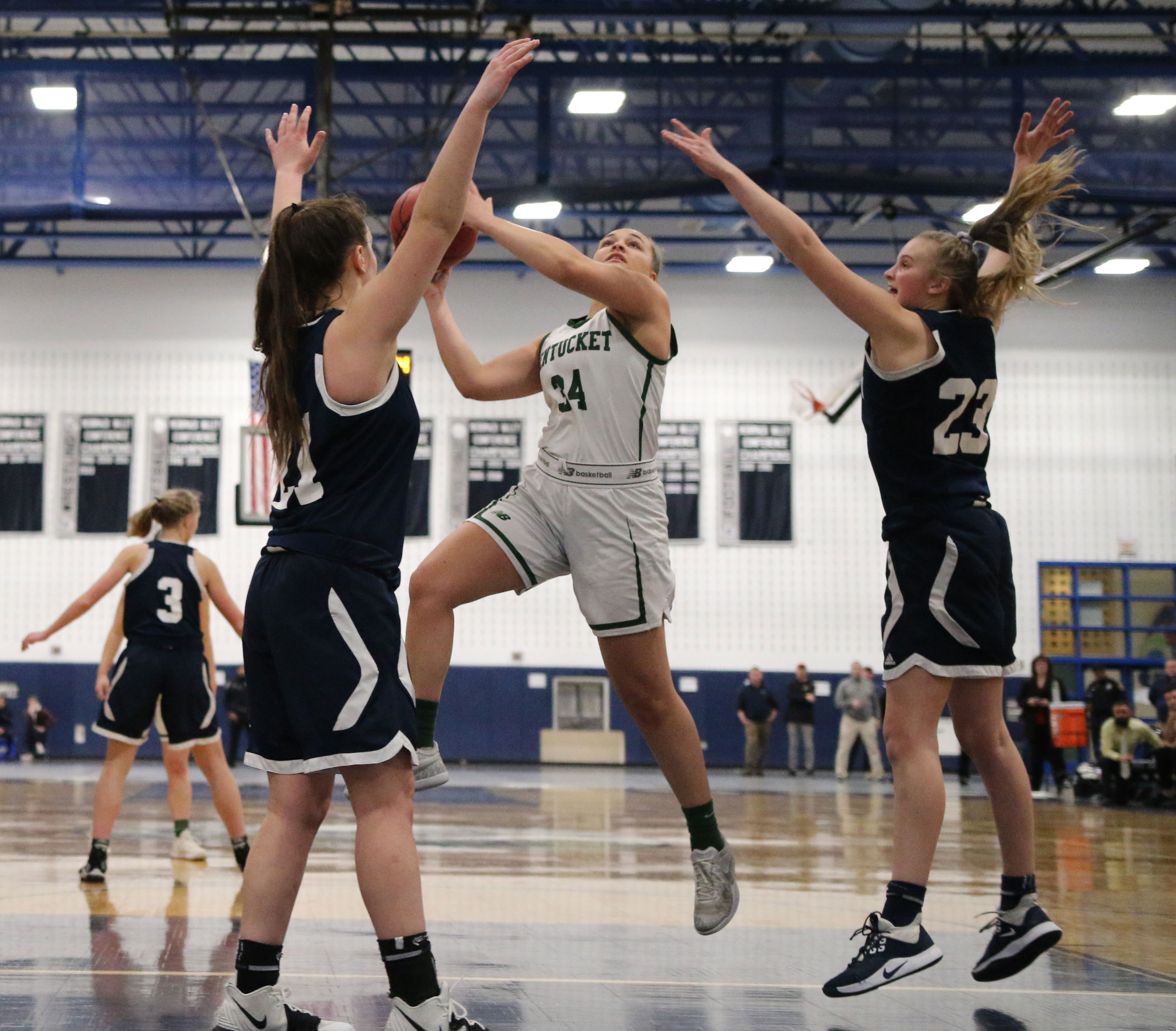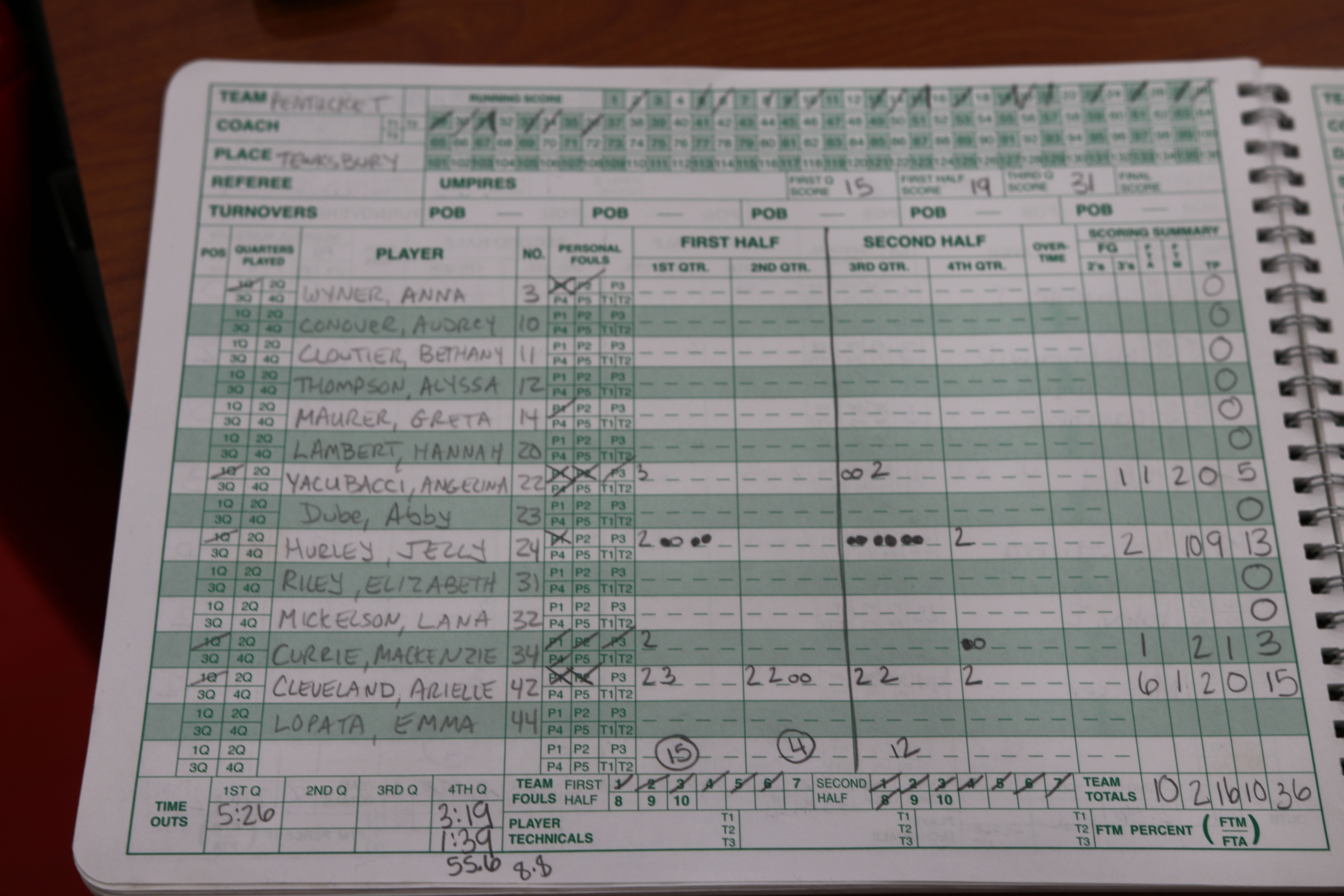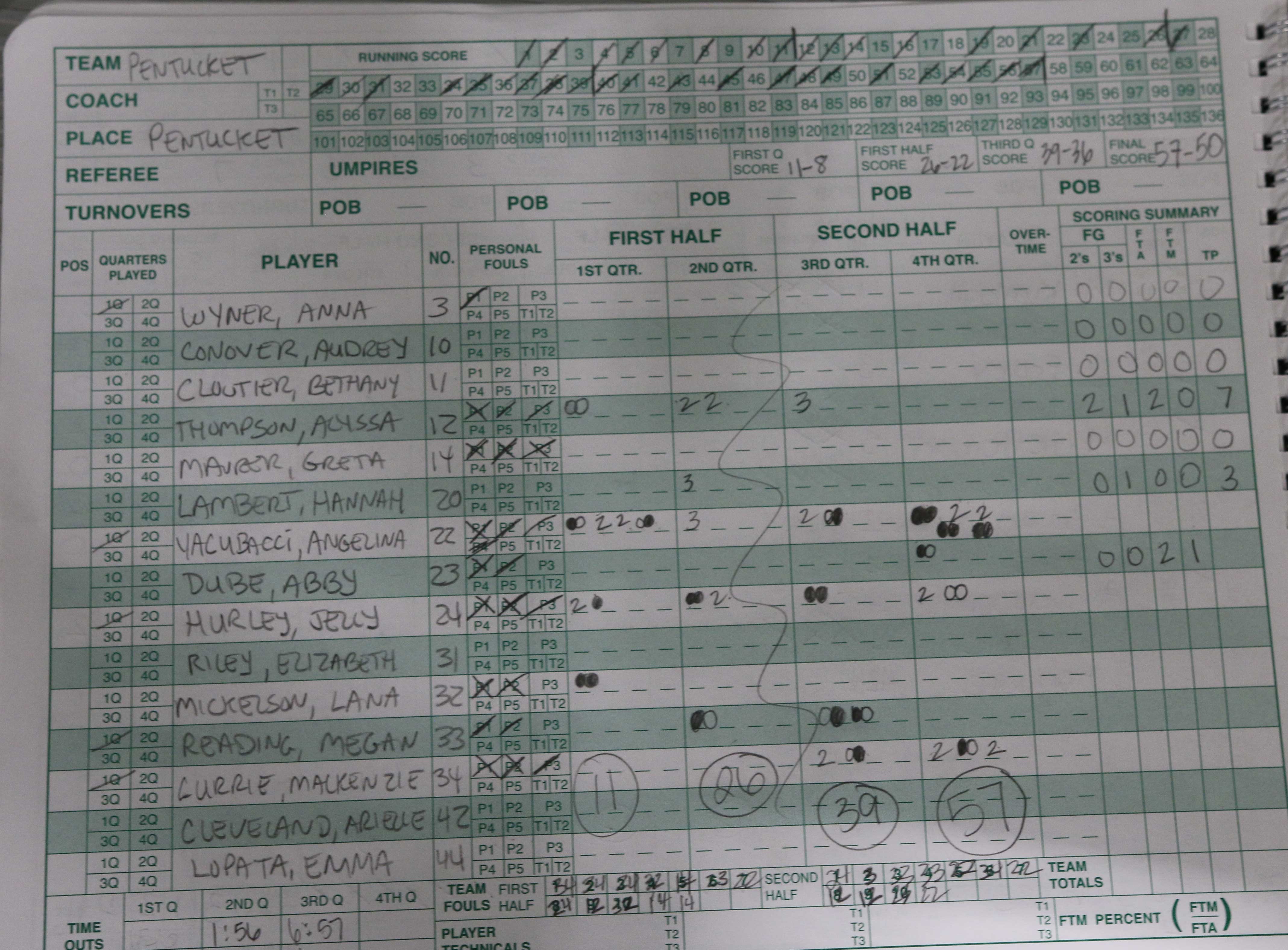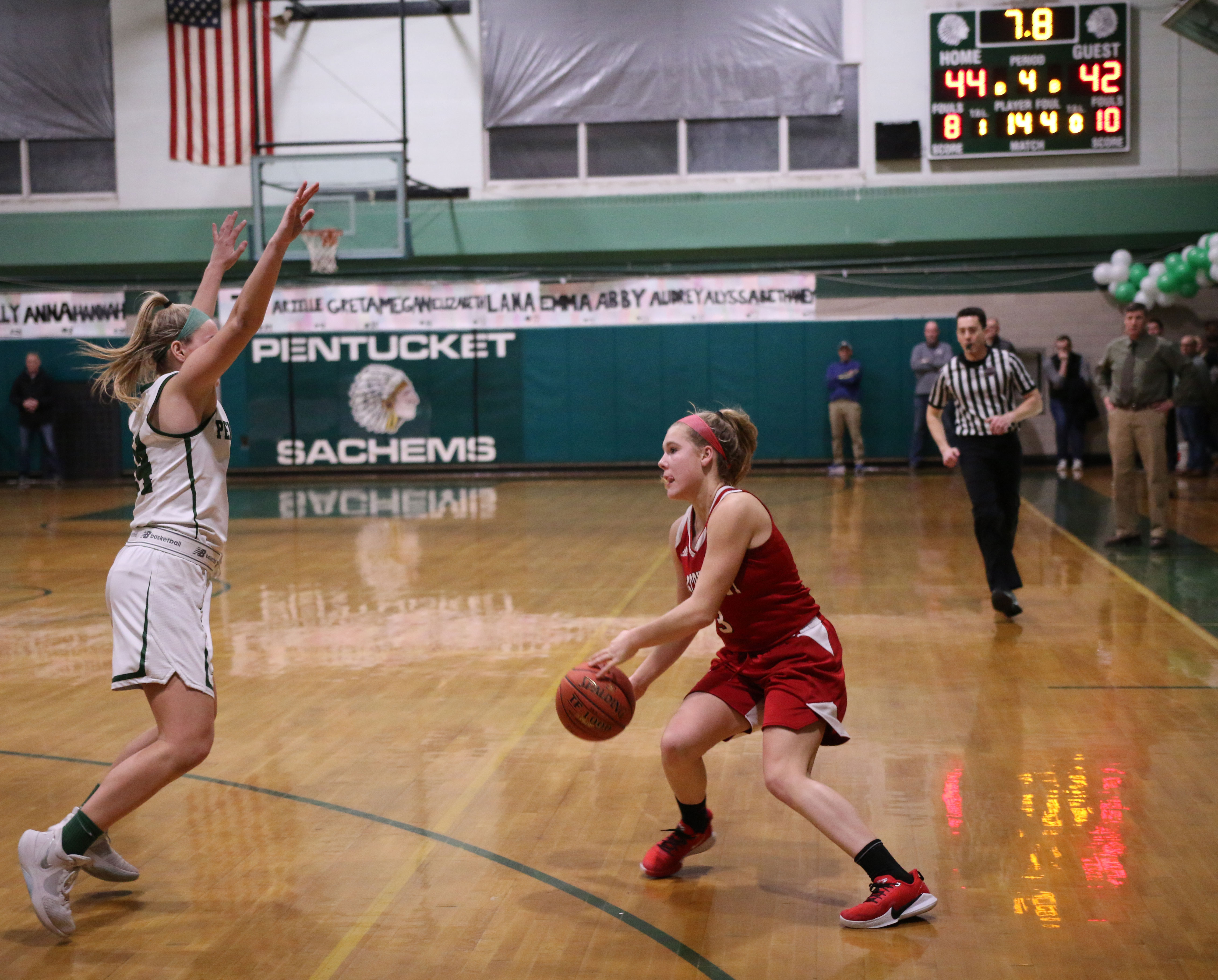 Angelica Hurley (20 points) carried the Sachems as far as she could. Angelica had eight points, including two three’s, as Pentucket took that eight-point lead.