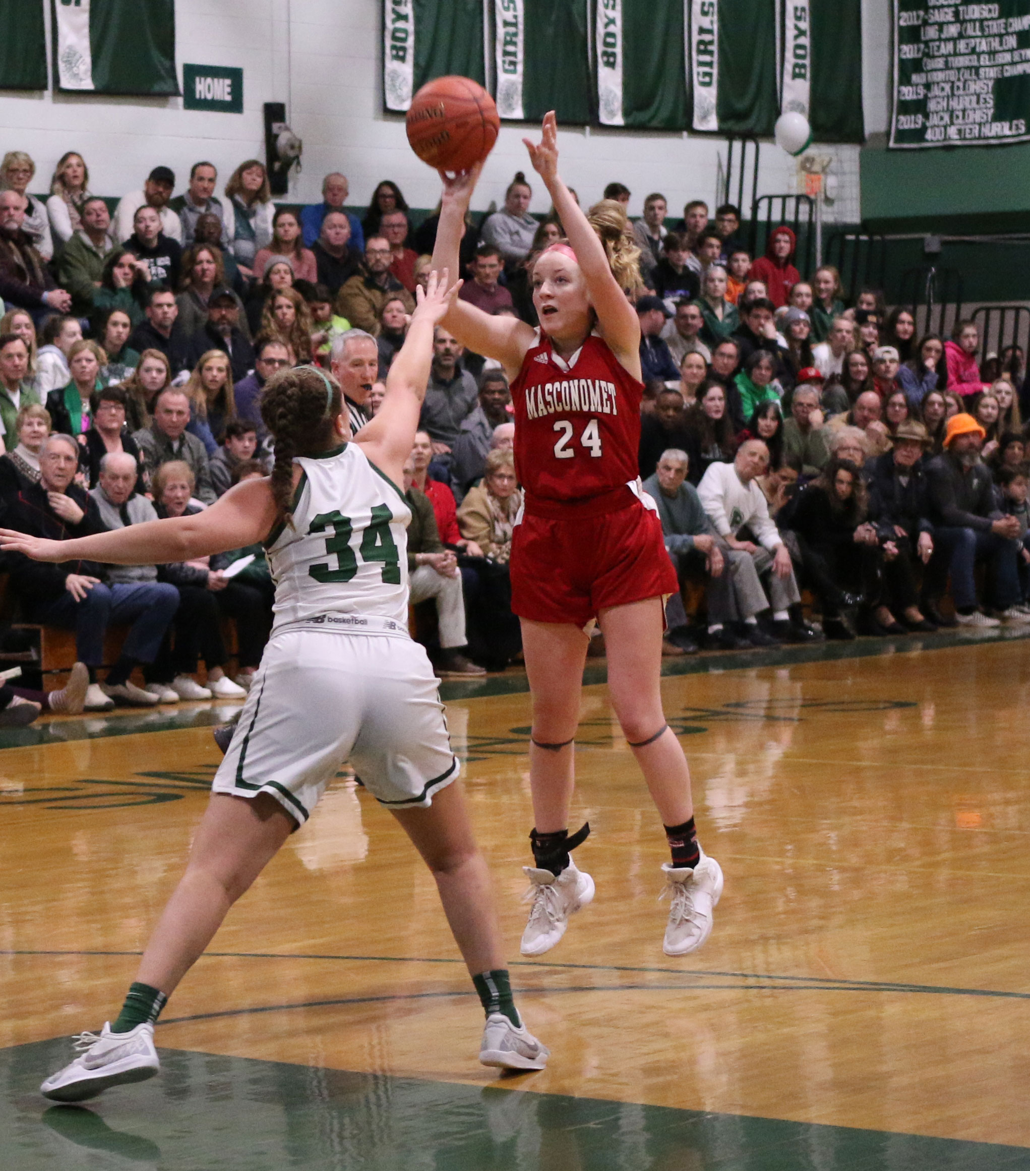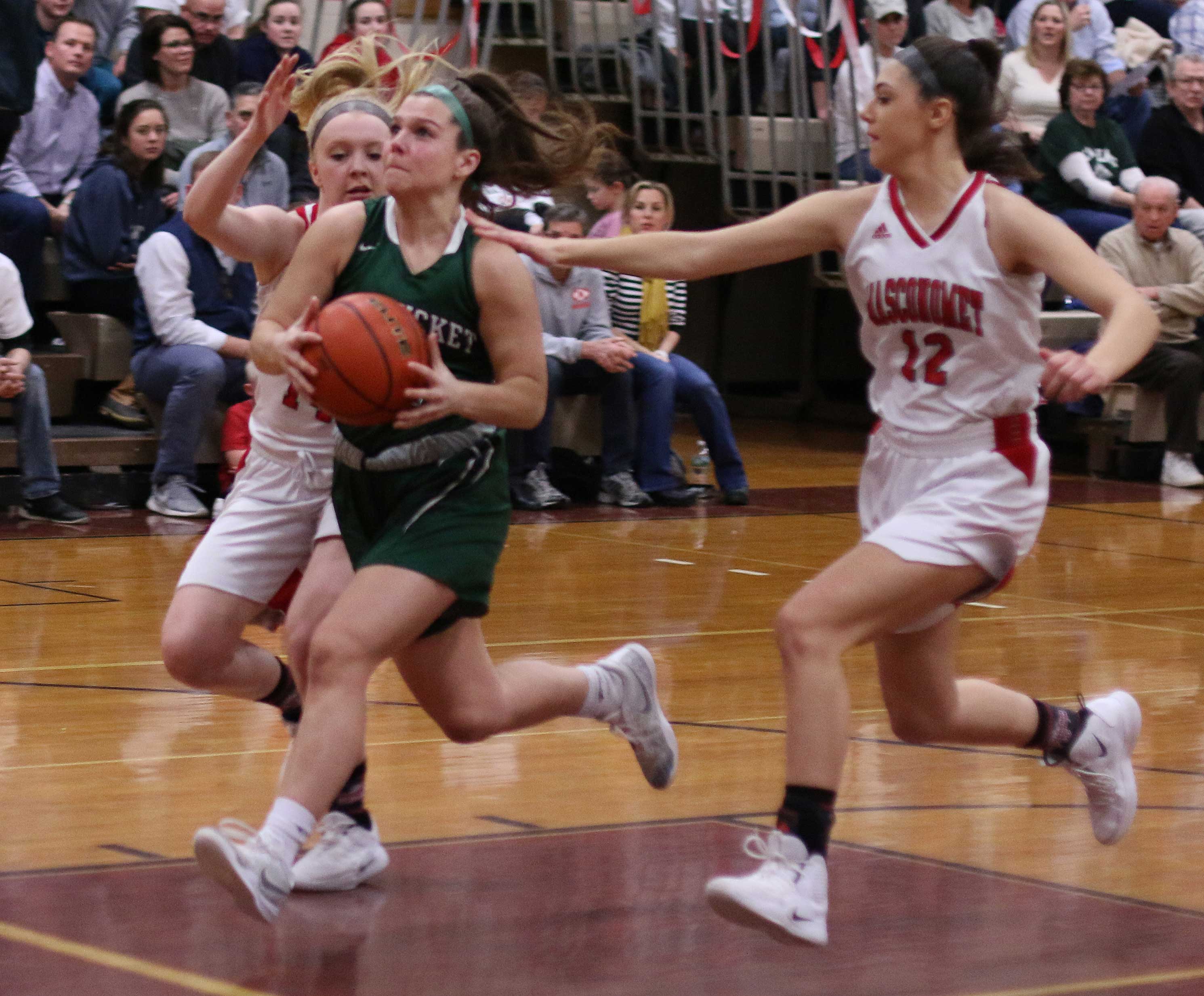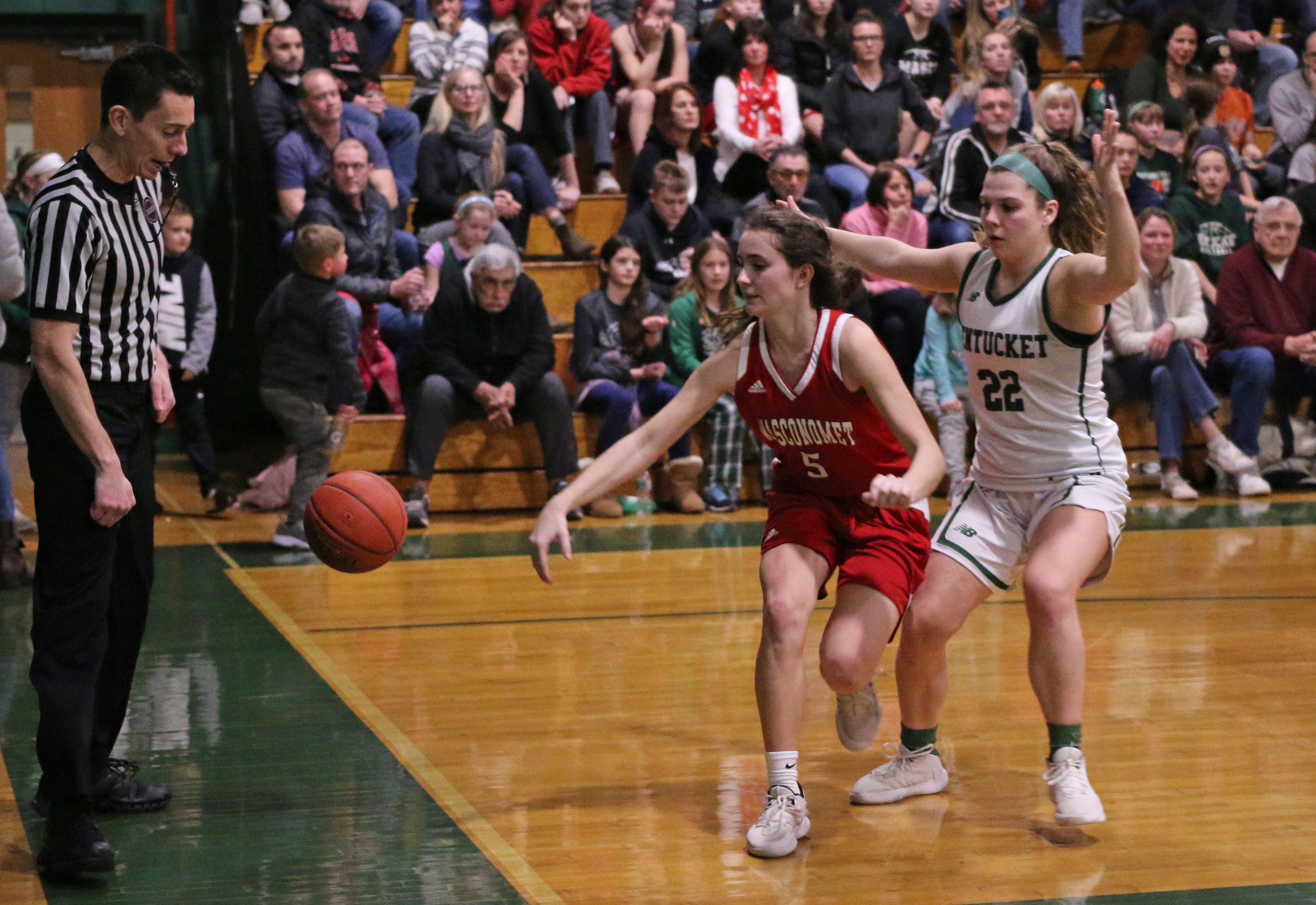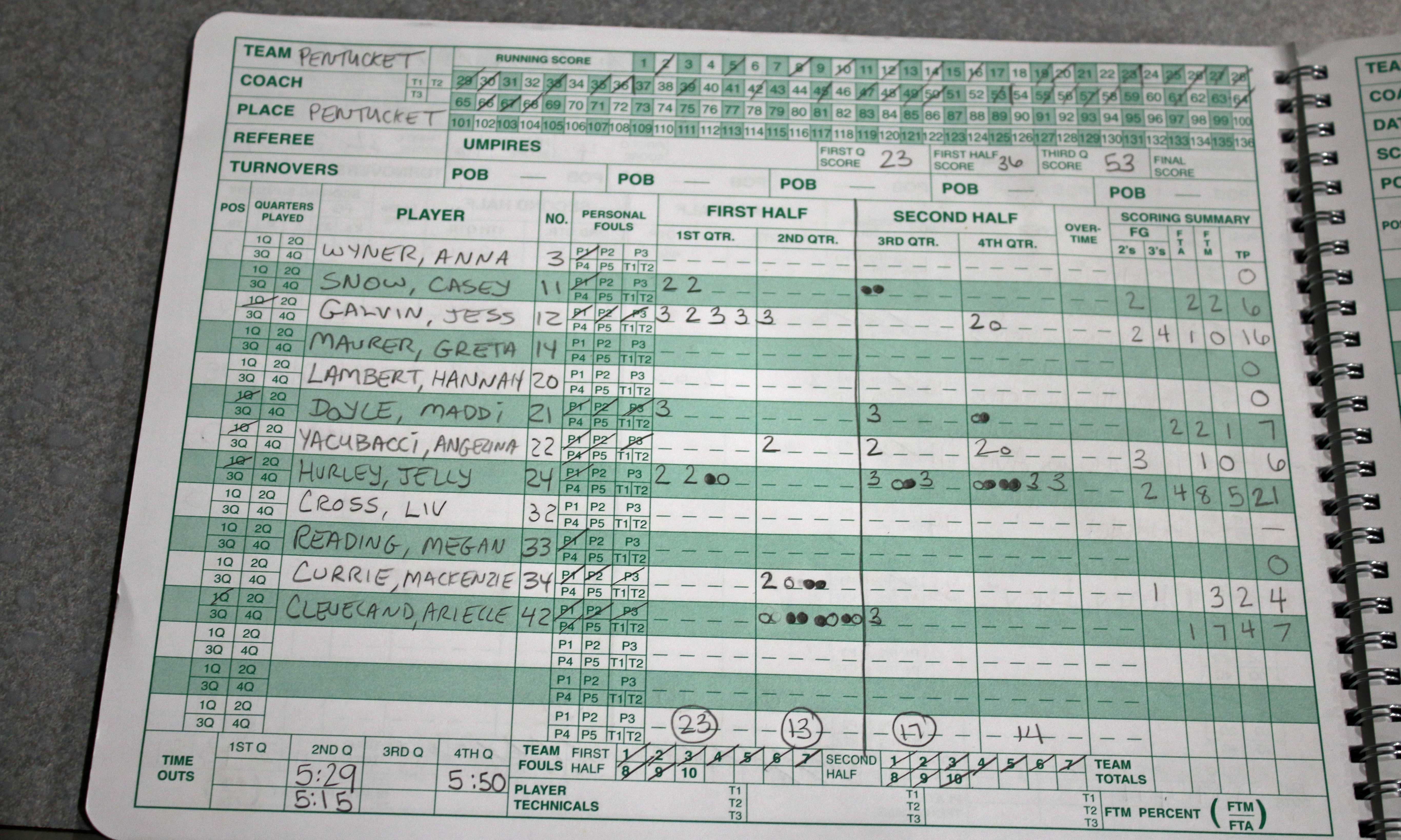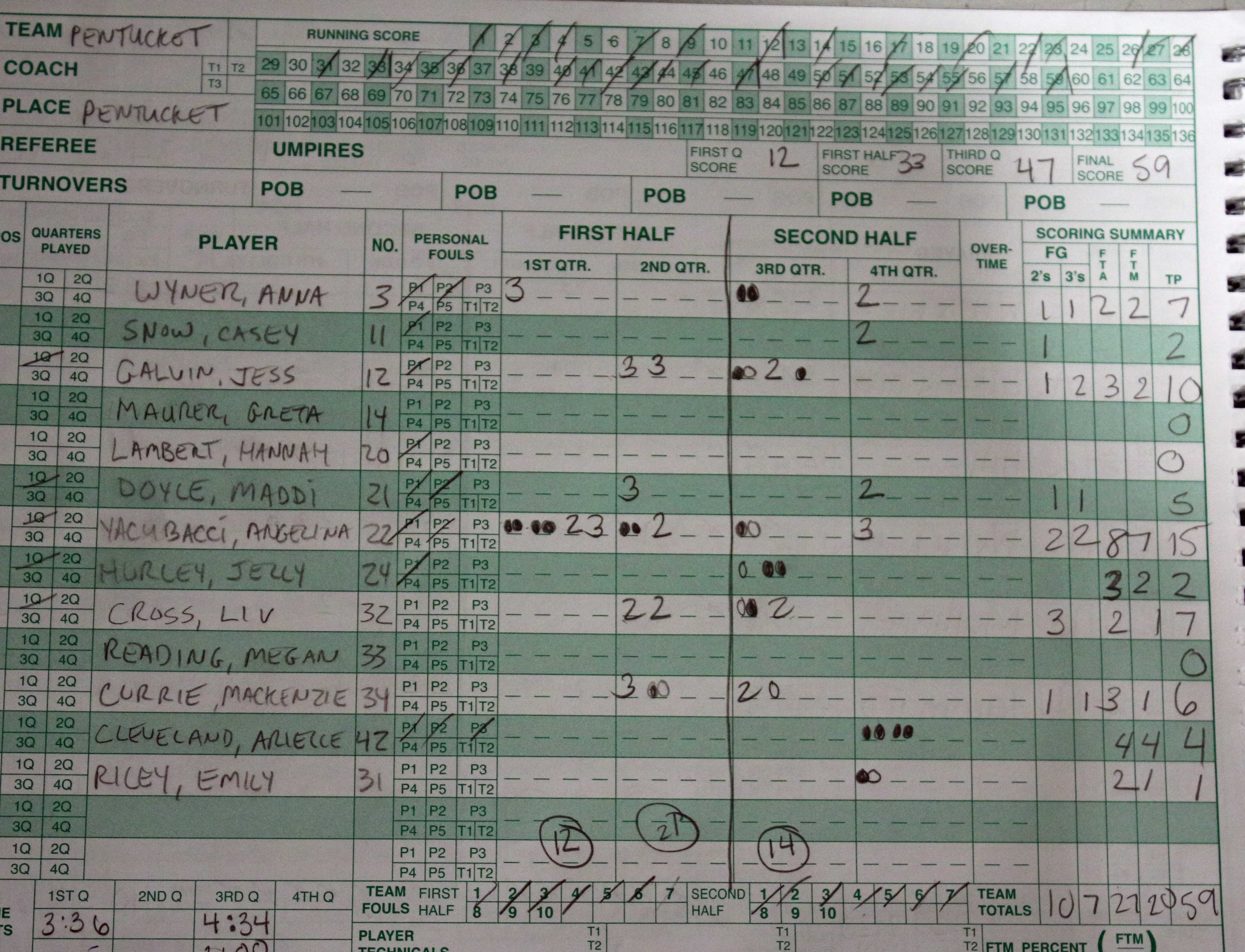 Angelica Hurley (20 points) carried the Sachems as far as she could. Angelica had eight points, including two three’s, as Pentucket took that eight-point lead.