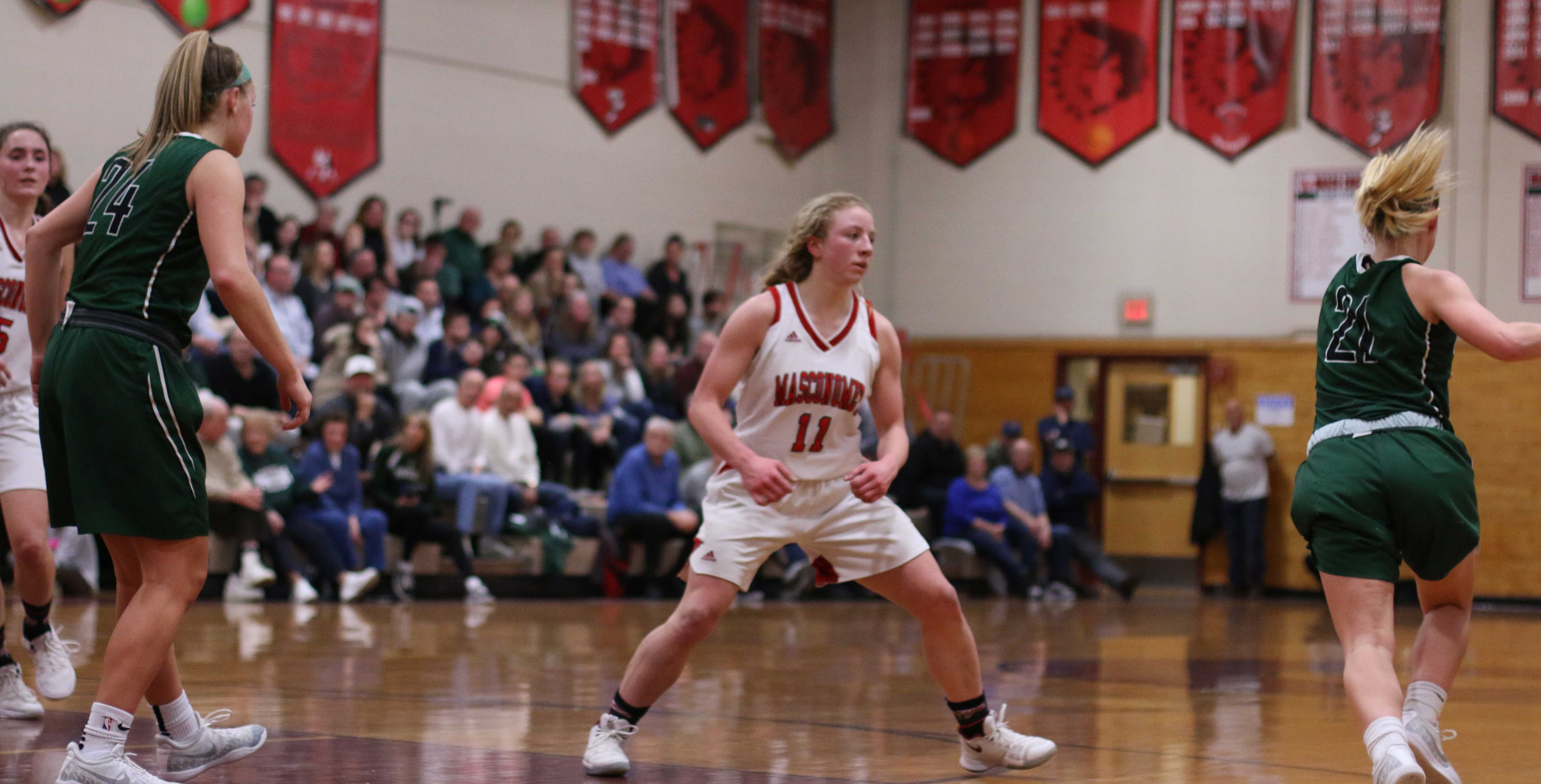 The Sachems stayed within one-possession range until the end of the quarter when a free throw and a last-second, NBA-distance three by Kiley McCarthy (12 points) sent NR to a 27-21 edge.