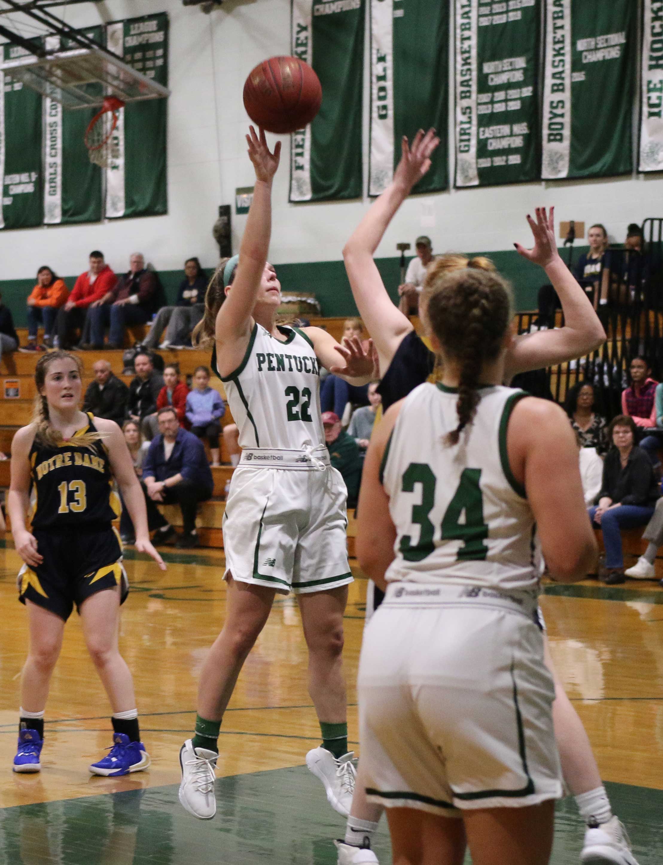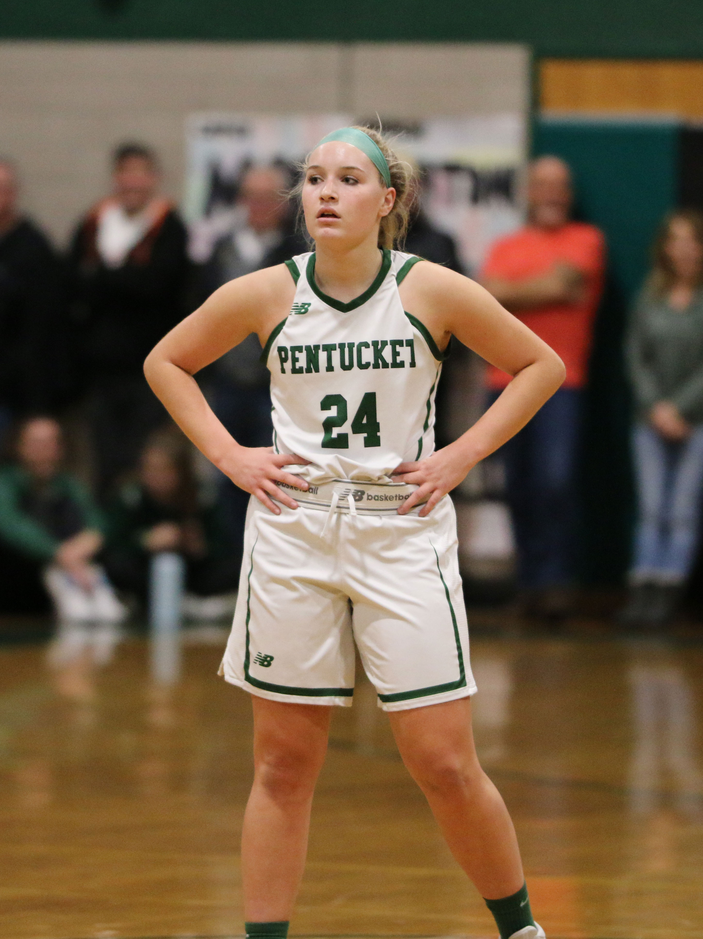 A Mackenzie Currie layup followed and, after Ali Grasso missed the front end of a one-and-one, Angelica Hurley nailed a long 3-pointer. Pentucket was back within a possession with fifteen seconds left.