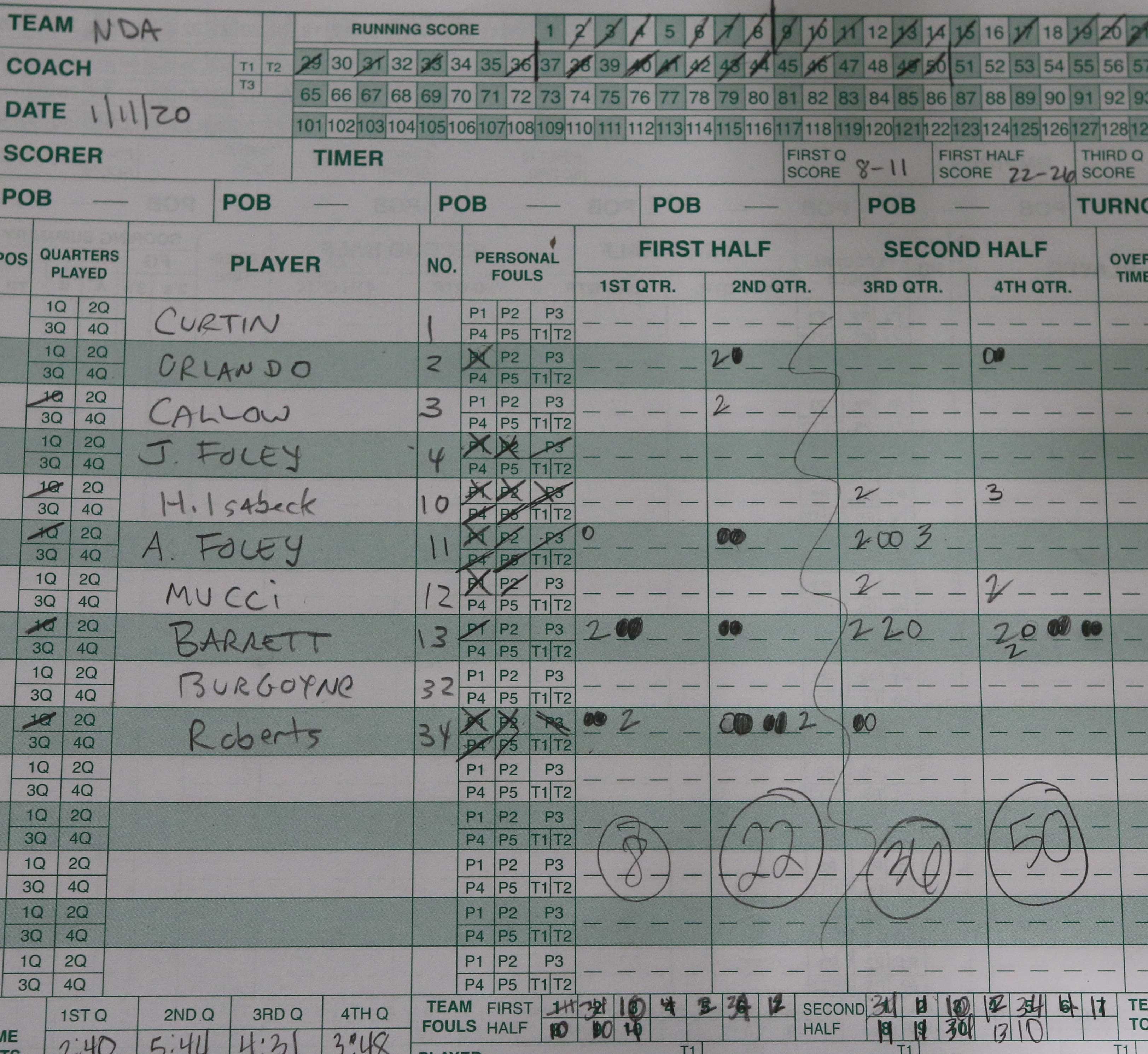 That she did because the next points scored were yet another three by Kiley. This one went off the backboard and in. The NR lead was now a game-high nine points (30-21) with 6 ½ minutes left in the game.