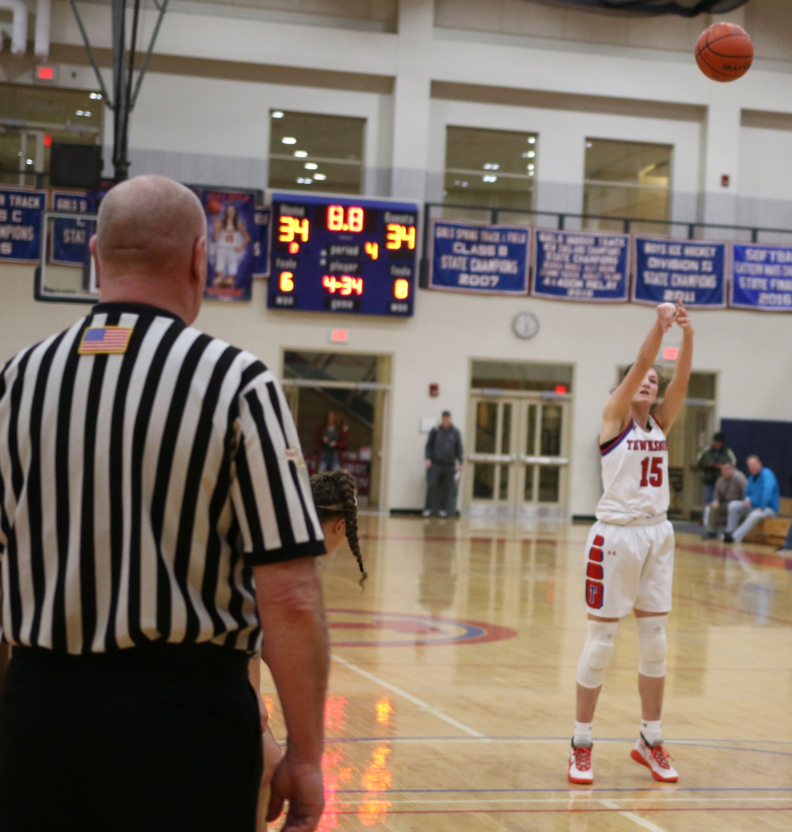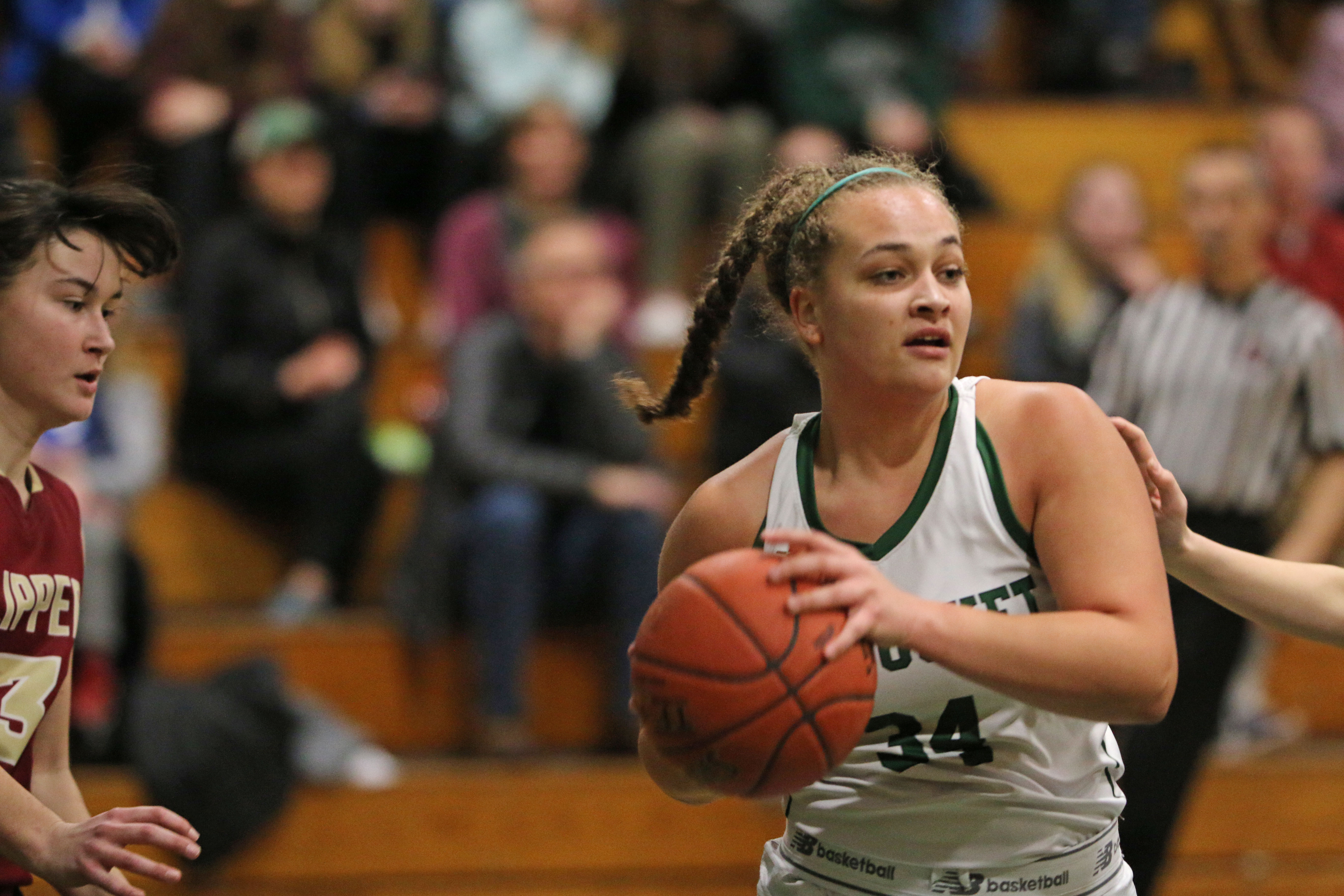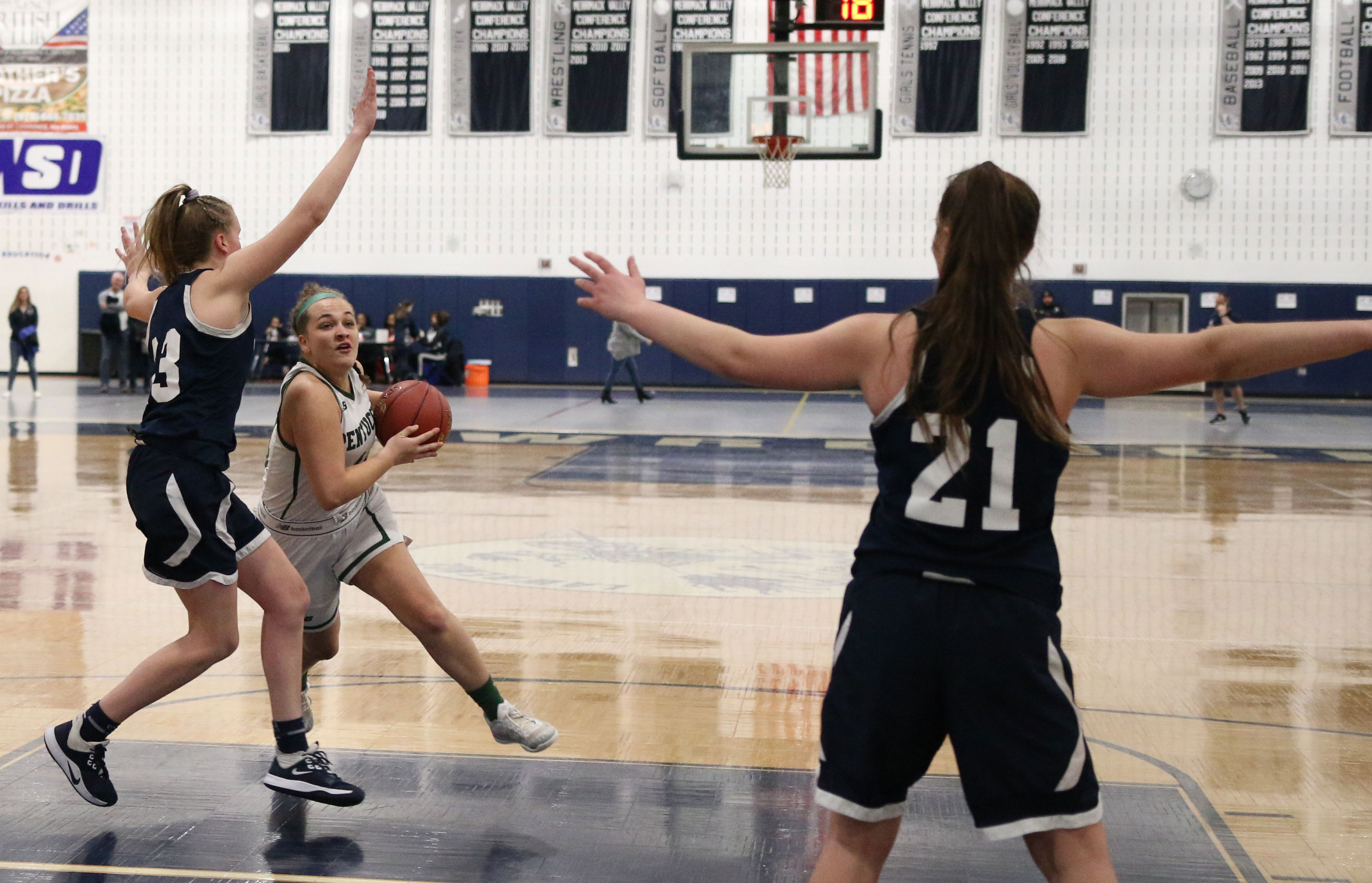 The Hornets’ streak of points continued with Ali Grasso setting up Nasha Arnold for a layup. Lauren Sullivan then had an old-fashioned 3-point play and Sarah Gerber added a free throw.