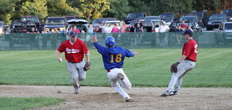 In the third, Ralph Renzulli reached on shortstop Derek Osmond’s throwing error and later scored Rowley’s third run on Marco Luisi’s single to right.  Also in the third, Townie starter Brett Smith had trouble with a blister and Derek Osmond relieved him.