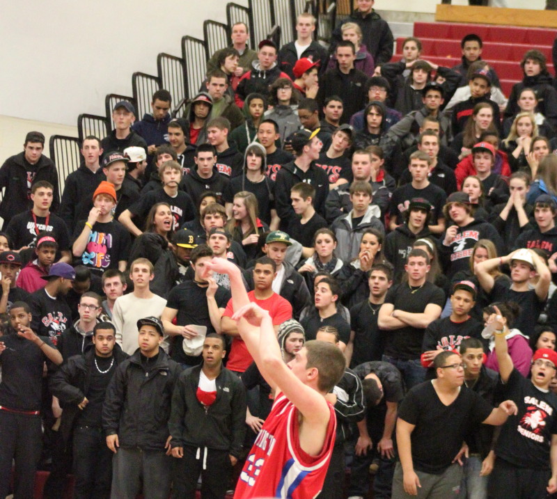 Mark Melanson (17 points) clinches the Burlington win with two free throws with 2.9 seconds left in front of a stunned Salem student section.