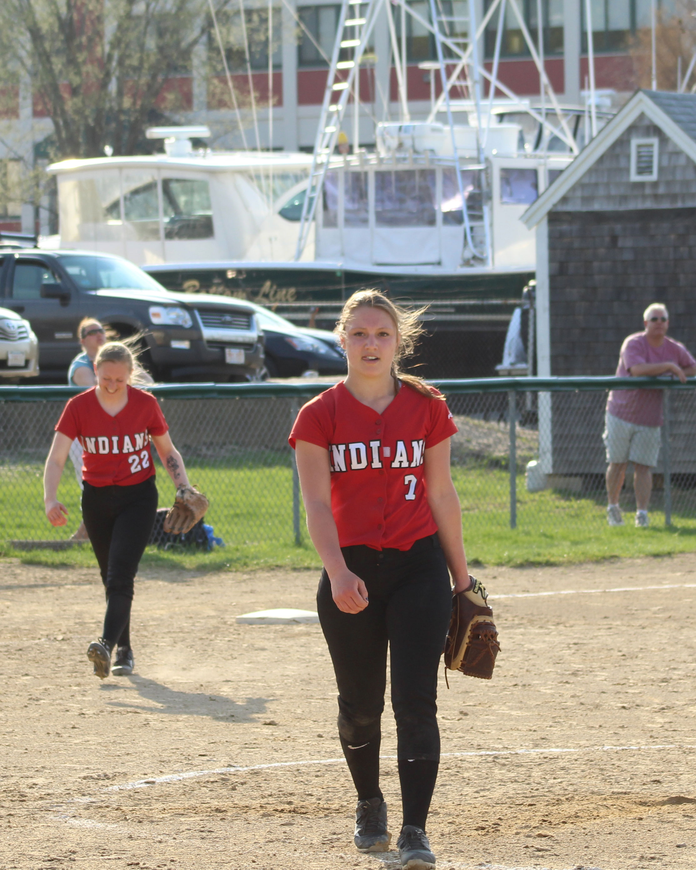 The Vikings still held a 4-1 lead but the Amesbury fifth would give them the lead. A walk, a play that wasn’t made at second, and a wild pitch all led to Indians’ runs. It was only a great running catch by RHS centerfielder Rachel Haselgard for the final out that kept the damage to four runs.