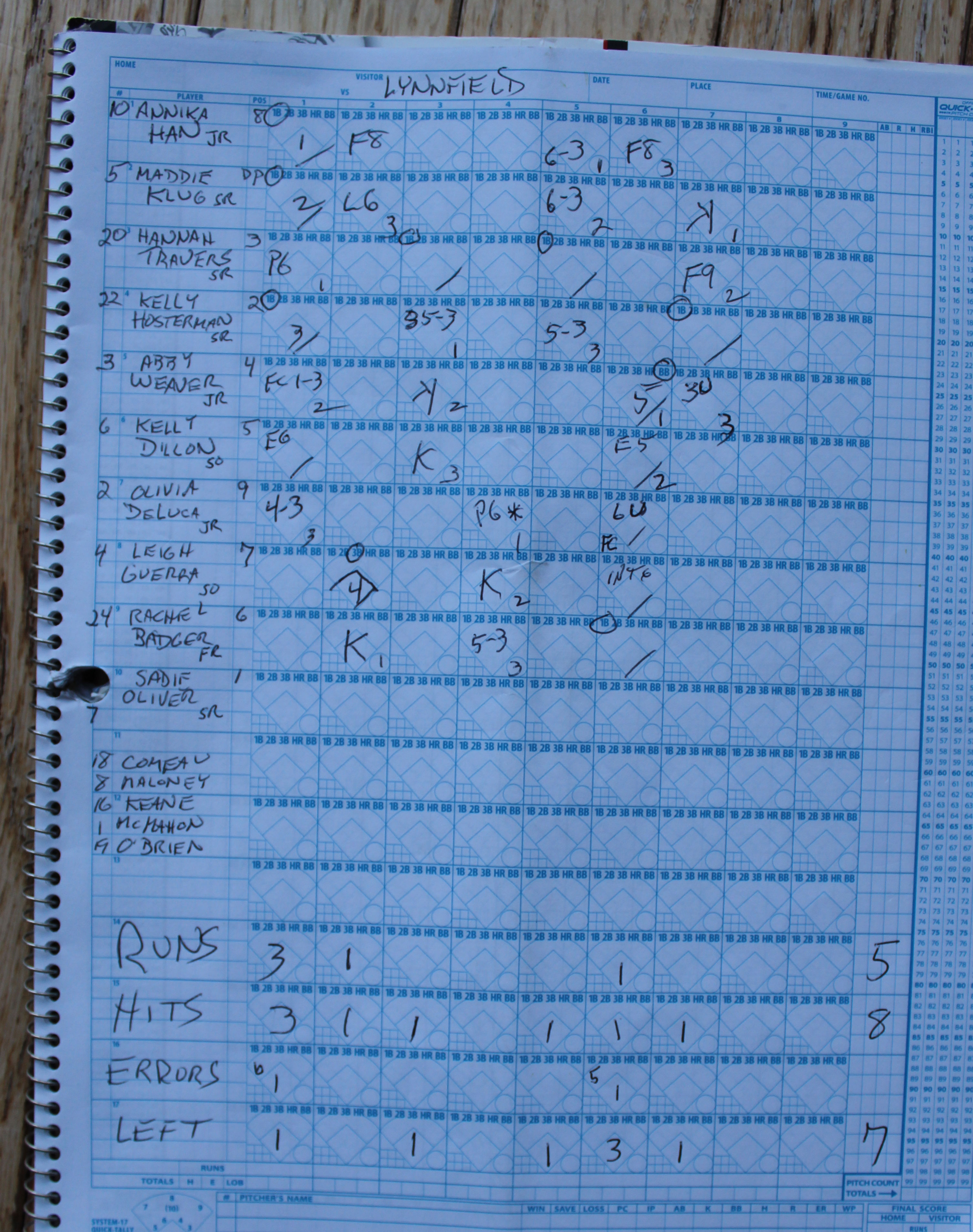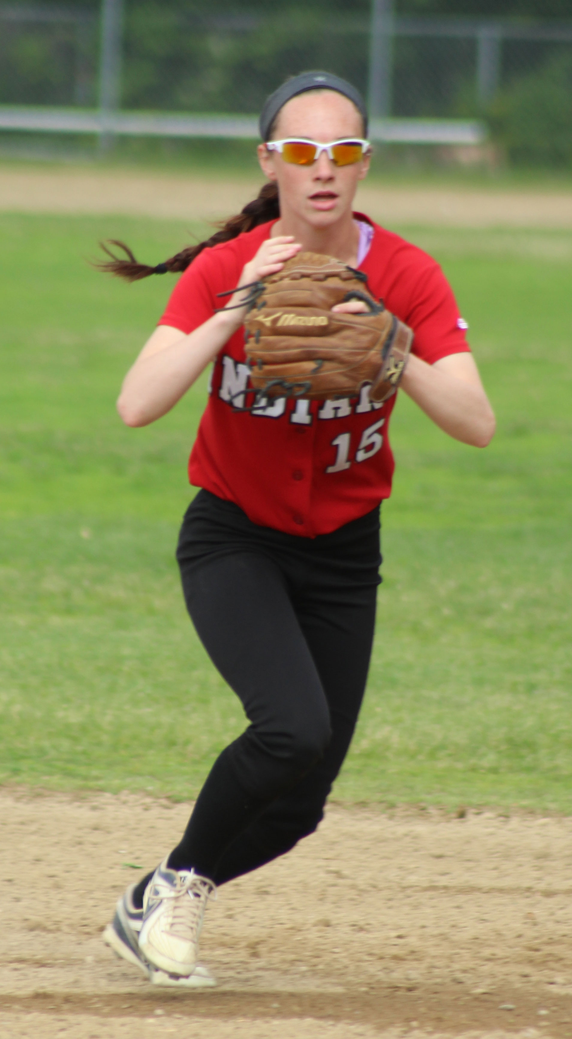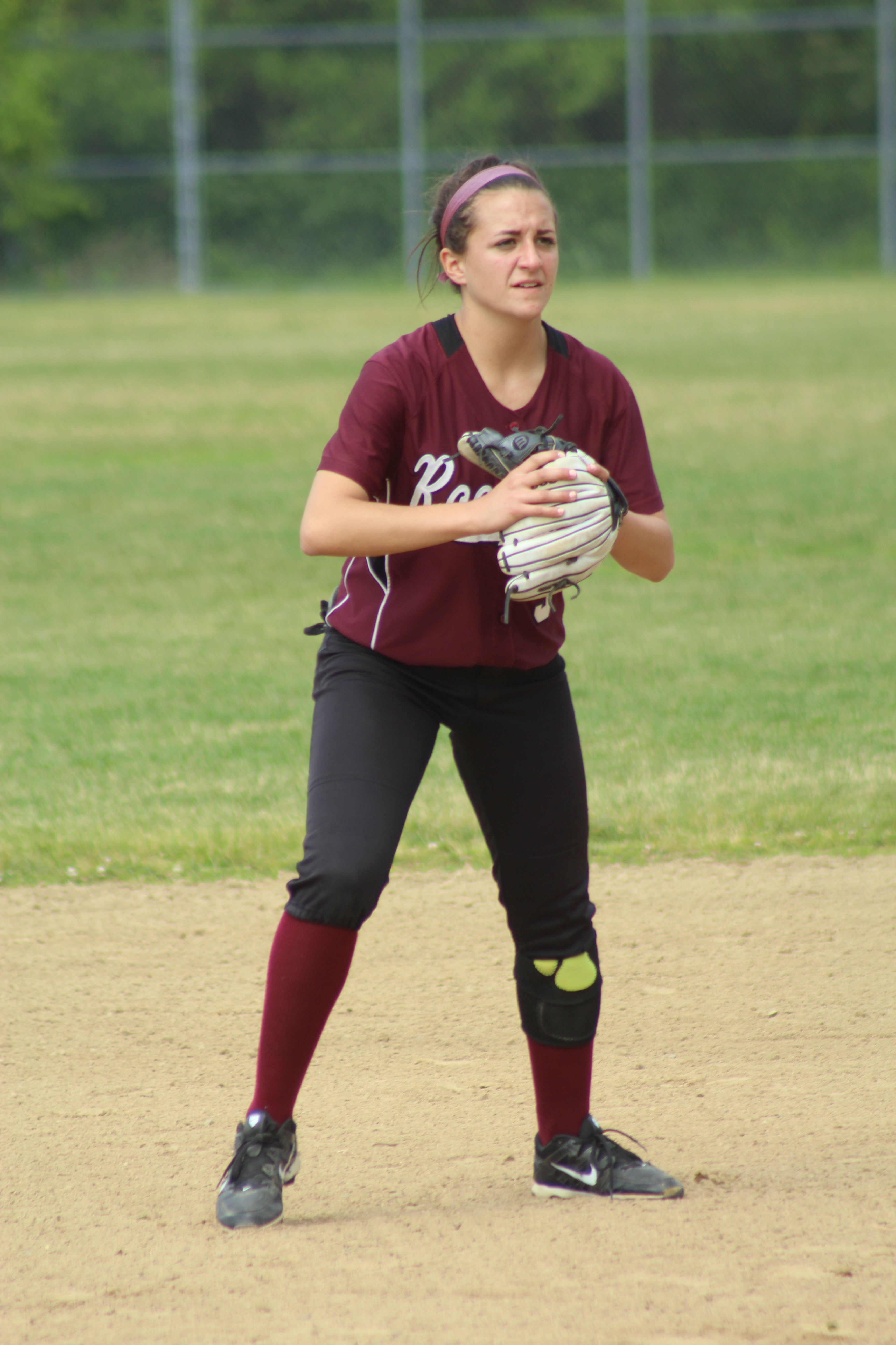 Meaghan Wonson was injured (nose) during Rockport’s pre-game infield practice but recovered in time to play the game. Yet another reason for infielders to wear masks.