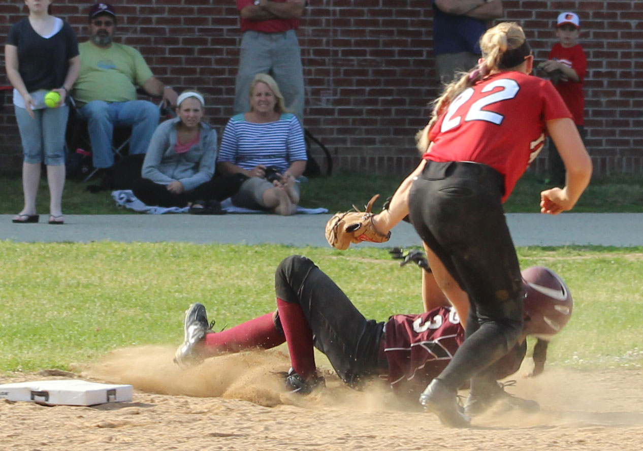 The game ended on a play at third. Jess Collins grounded out shortstop-to-first with one out but baserunner Miranda Roller (on second) decided to try for third after the out at first. Unfortunate decision. First baseman Zoe Fitzgerald fired a strike to teammate Autumn Kligerman at third and Miranda never came close to reaching the base.