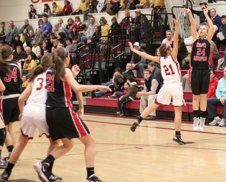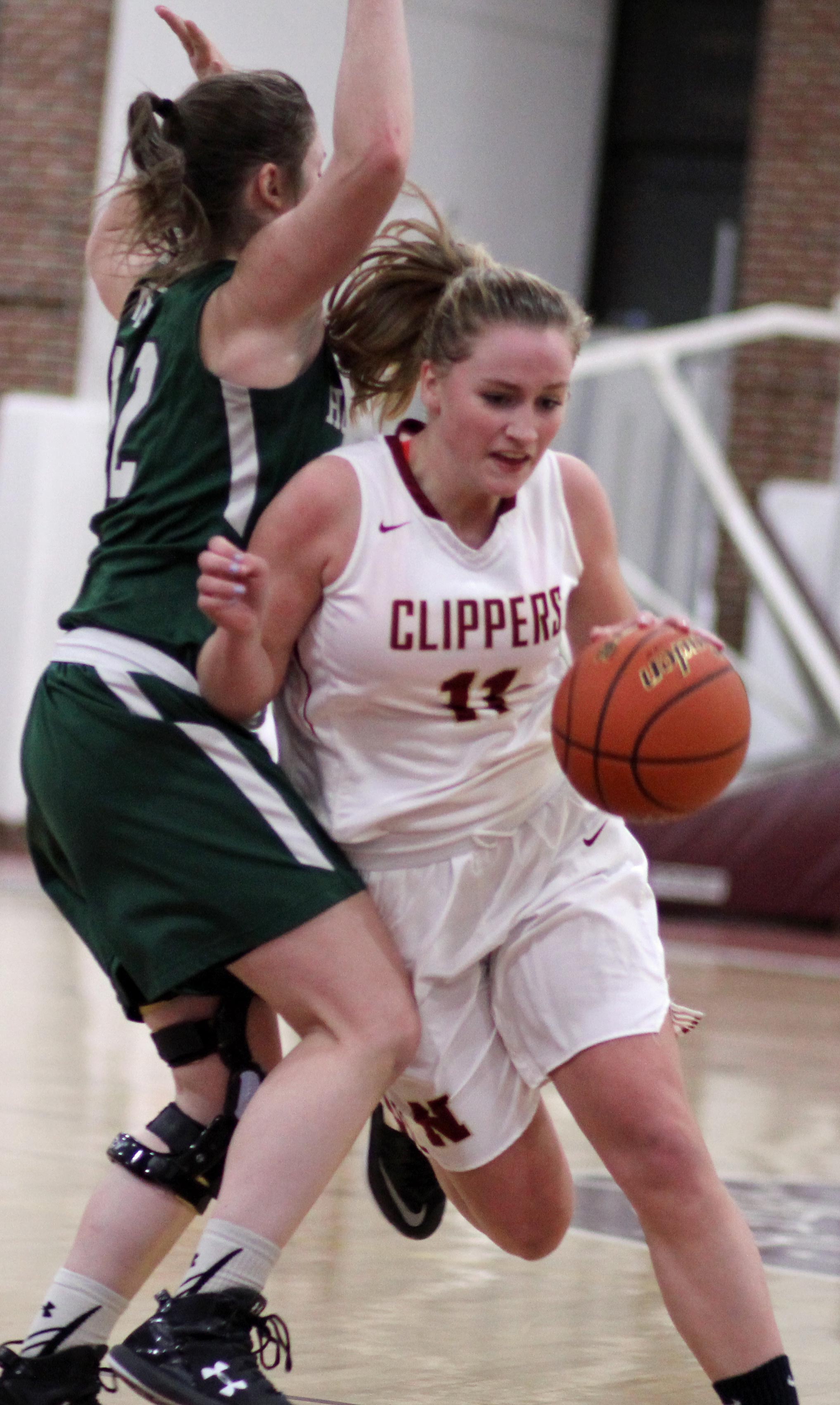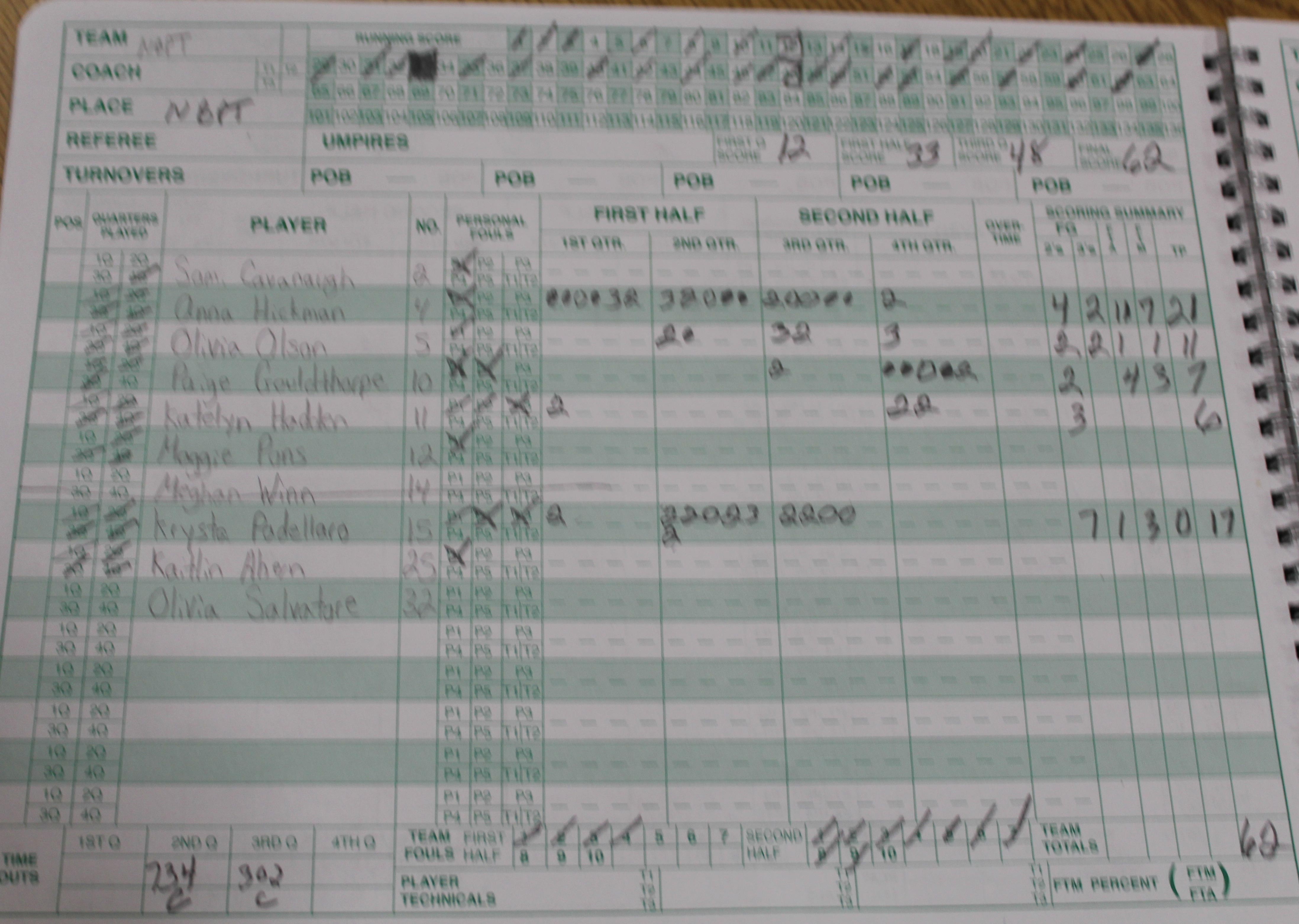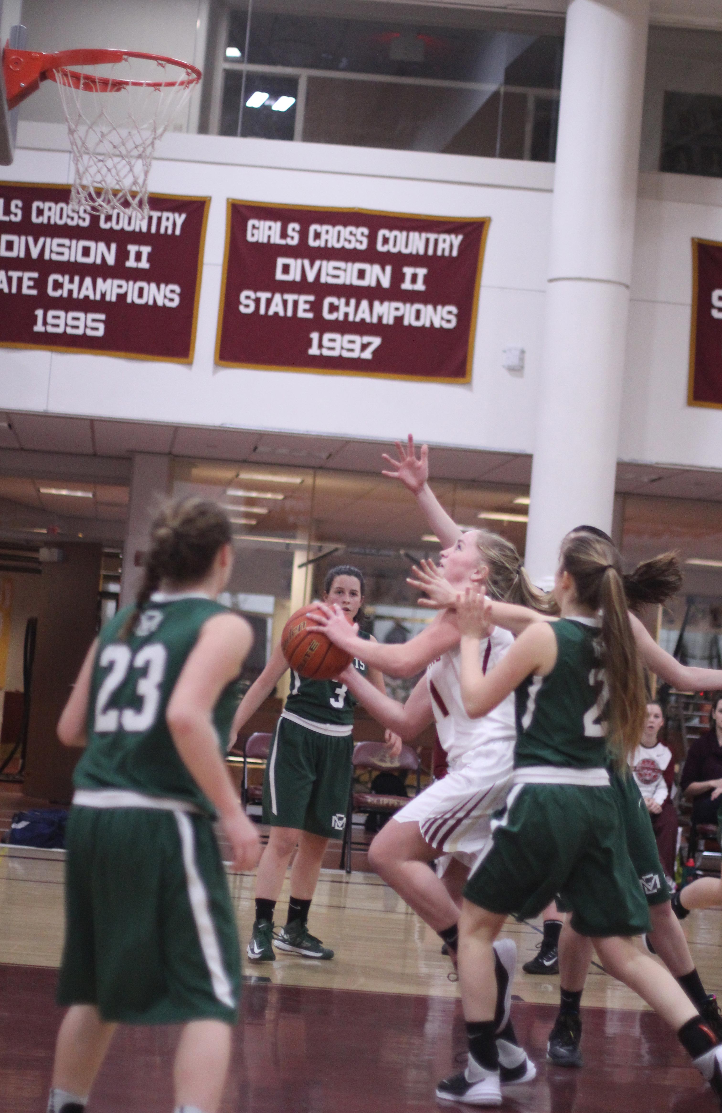 Krysta Padellaro (17 points) had a big hand in the win as well, She put up eleven points in the breakaway second quarter. The ME deficit was only four (22-18) five minutes into the second quarter before the NHS junior dribbled the length of the court for one layup, drained a triple, and drove in for another layup. Those seven unanswered, extended the NHS margin to eleven (29-18).