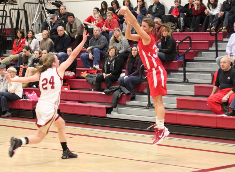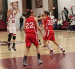 Pentucket’s response won the game for them. Two freebies by Sarah Higgins (she was an amazing 9-for-9 from the line), a driving layup by Alex Moore, and gutsy triple by Alex (from Kelsi McNamara) went unanswered by the Chieftains. This consecutive action put the Sachems on top, 54-52, with thirty seconds left.