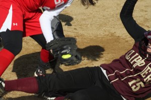 Big play in this game? Triton pitcher Mara Spears threw a wild pitch to the next batter (pinch hitter Ashley Casellini) and Vicki Allman tried to score. Catcher Julia Hartman retrieved the ball, tossed to Mara covering home, and Vicki was tagged out to end the inning. If Vicki had scored the game was over.