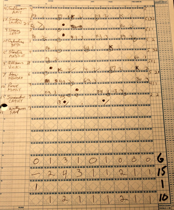 That was more than enough runs for Rachel to work with in the bottom of the ninth. She gave up a hit to Beth Castantini to lead off the inning but retired the next three batters in order to end the game.