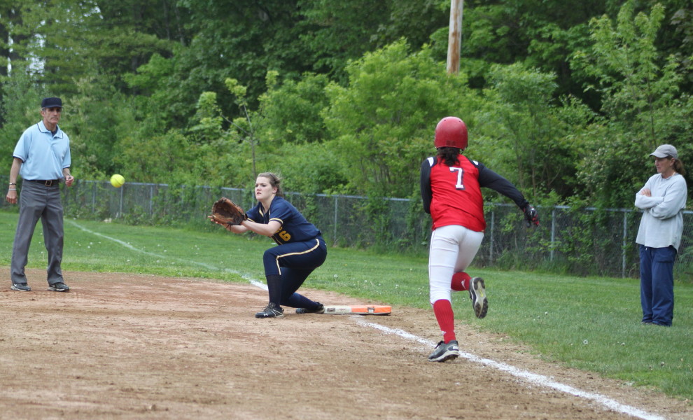 The fifth, however, started ominously for Newburyport as errors by 3B Meghan Stanton and pitcher Vicki Allman gave Amesbury baserunners they shouldn’t have had. Five of the next six Indians’ batters had hits, including a double (Amanda Schell), triple (Cassie Schultz), and a homer (Ashley Valme), and the home team had seven runs and the dreaded big inning Newburyport wanted to avoid.