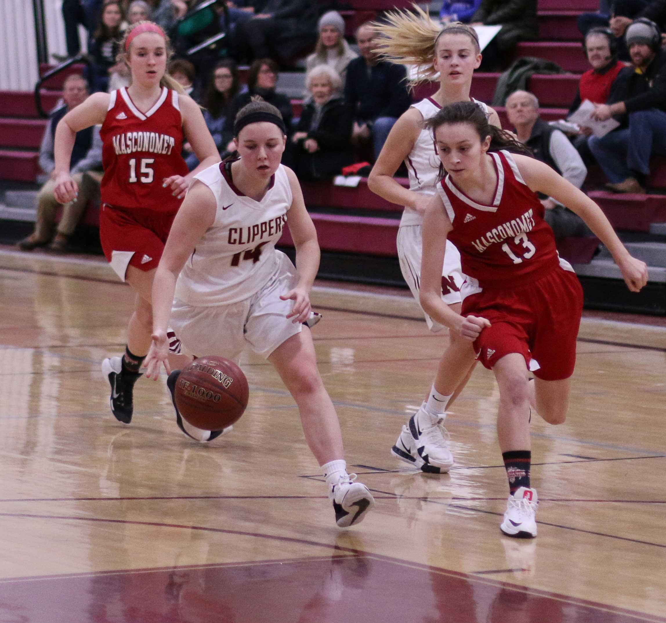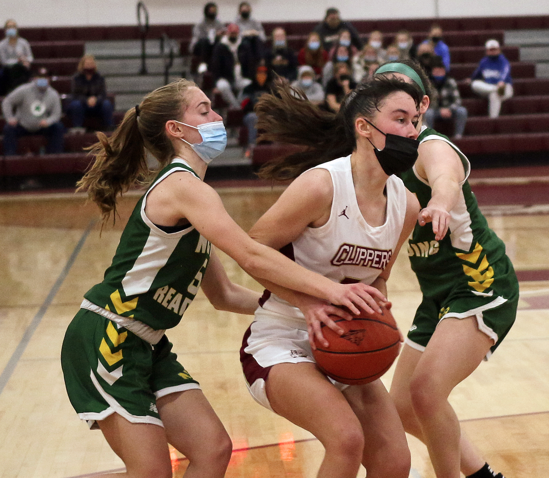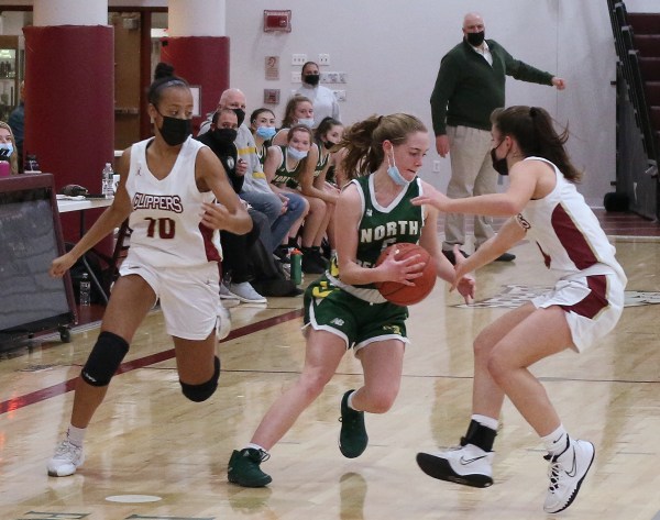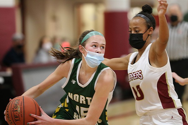 North Reading played an active zone defense for the entire game. Newburyport featured man-to-man almost all the way.