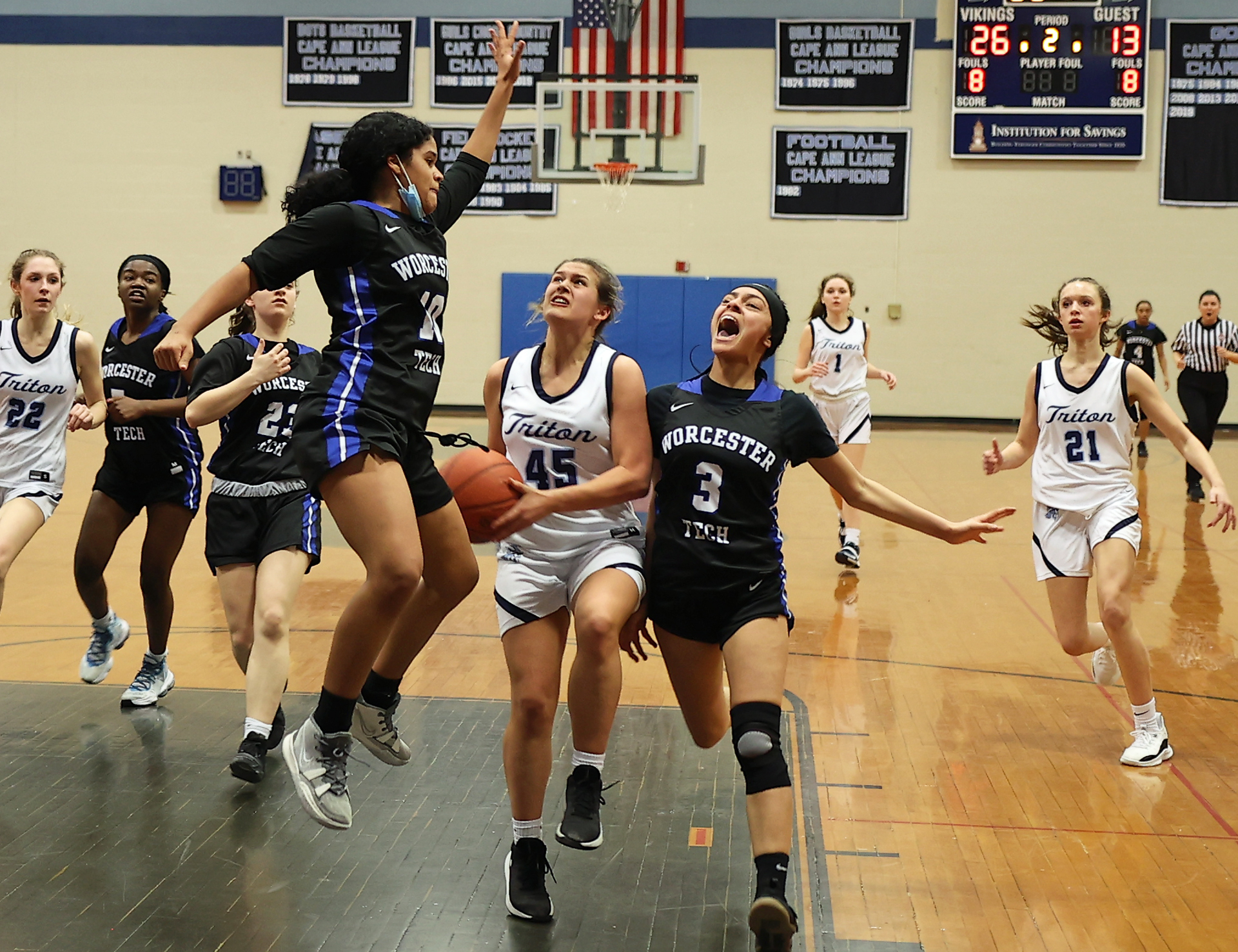 Worcester Tech did not go away. Led by Sanaii Diaz (15 points) the Eagles hung around and narrowed their deficit to 50-34.