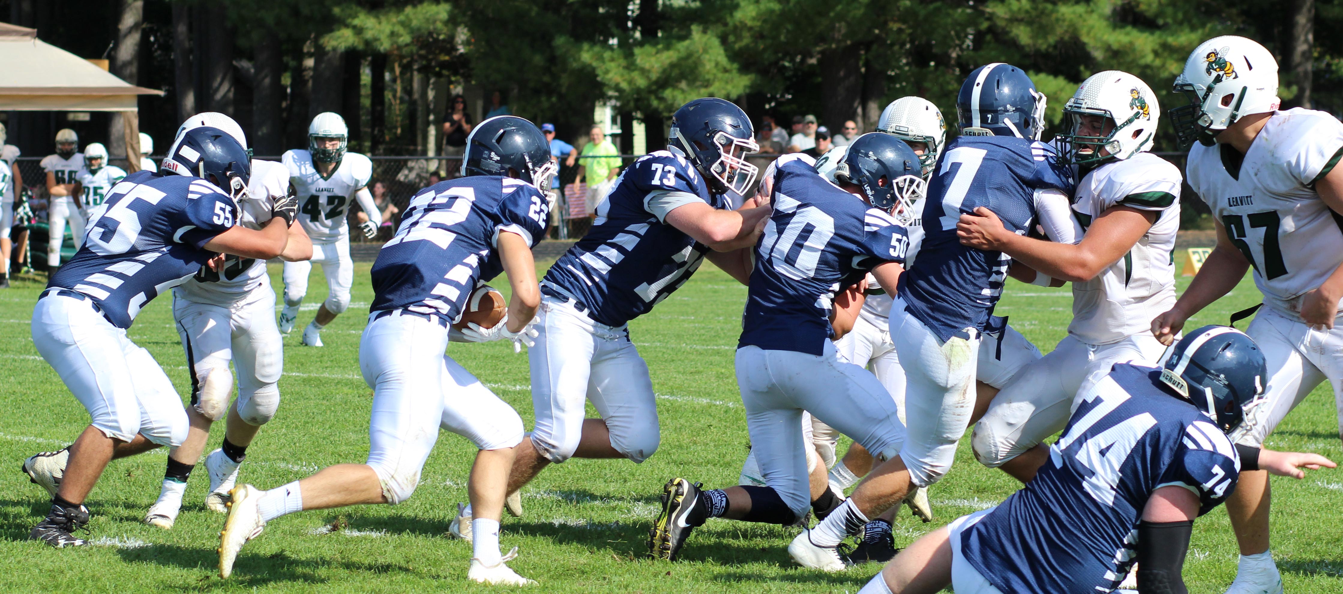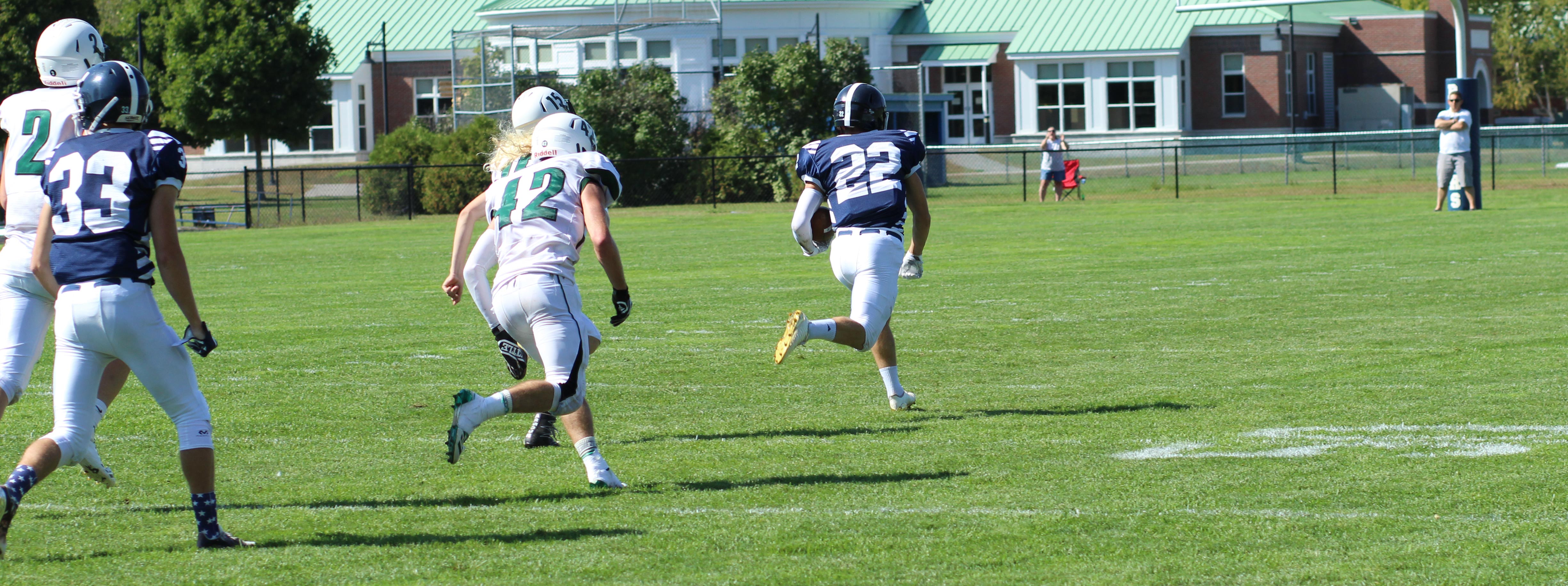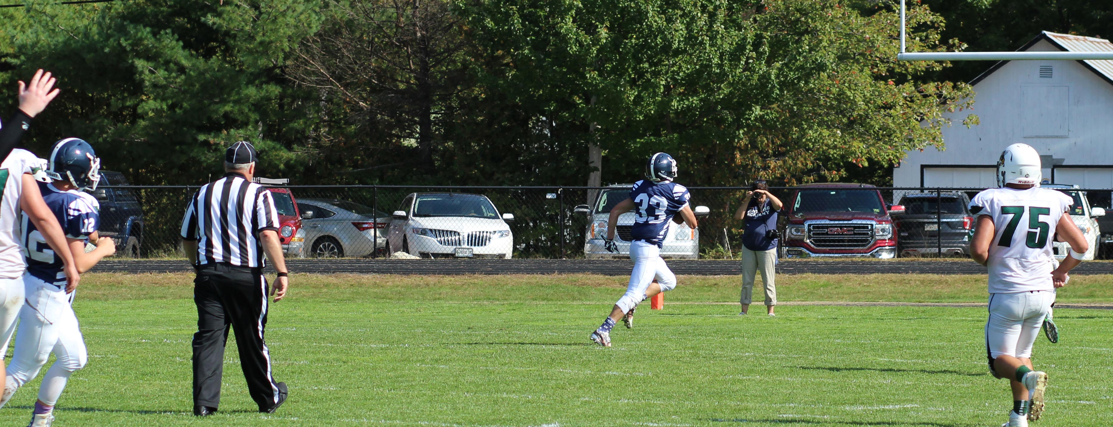 The visiting Lisbon Greyhounds had, what appeared to be, a comfortable 22-0 lead over the home Fryeburg Academy Raiders two minutes into the second half.