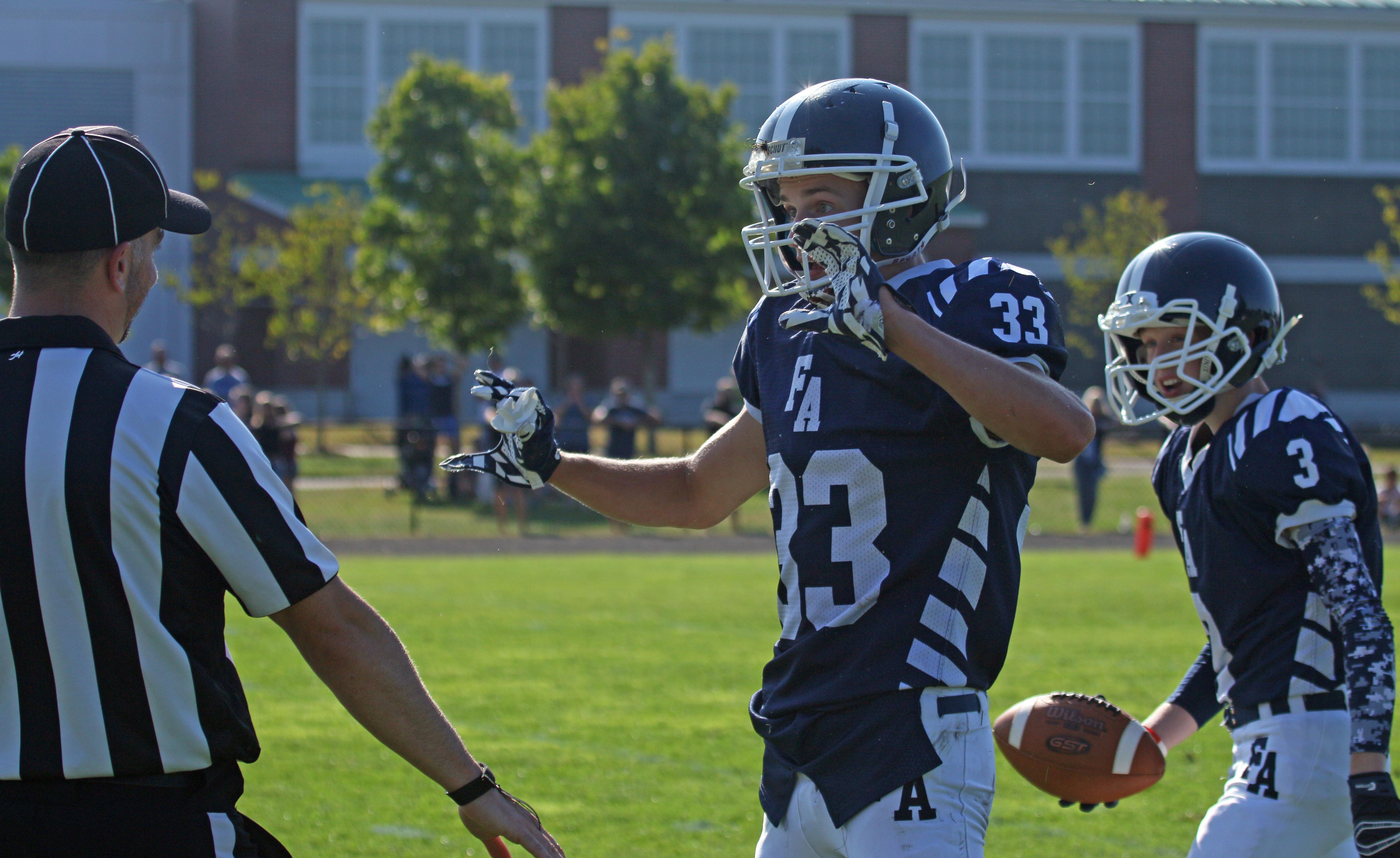 FA captain Tucker Buzzell was impressive. Coach Turner called him, “relentless.” Tucker ran a fumble back for a touchdown to turn the momentum FA’s way. In the second half, he kicked off and then made a touchdown-preventing tackle on that play.