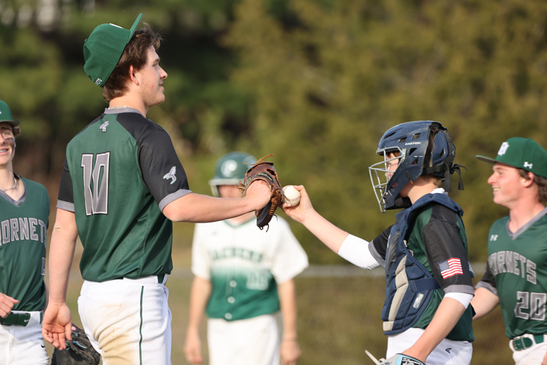 Coach Murray brought on Ethan Hunt to pitch in the second inning. The UMass Boston commit struck out twelve Hornets over the next six inning of relief.