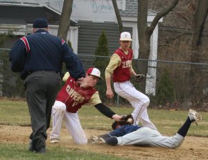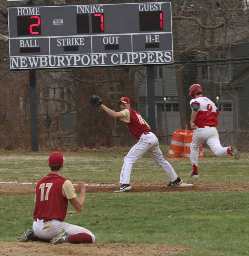 An error, a wild pitch, and four hits produced Newburyport’s first three runs in the second inning.