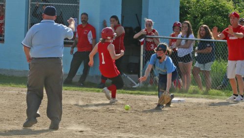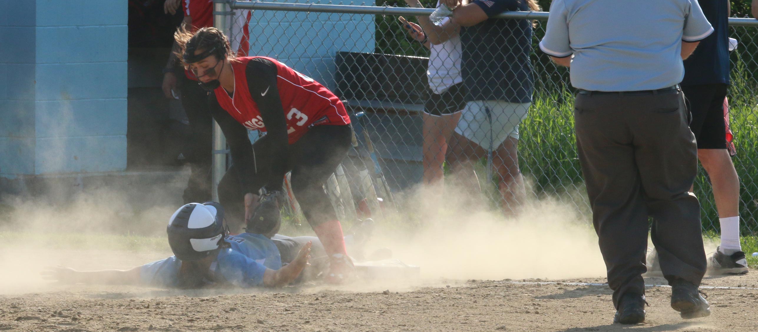 A two-out infield error enabled Kendra Griffin to get the run back in the second inning. Kendra eventually scored four times and had three hits in the game.