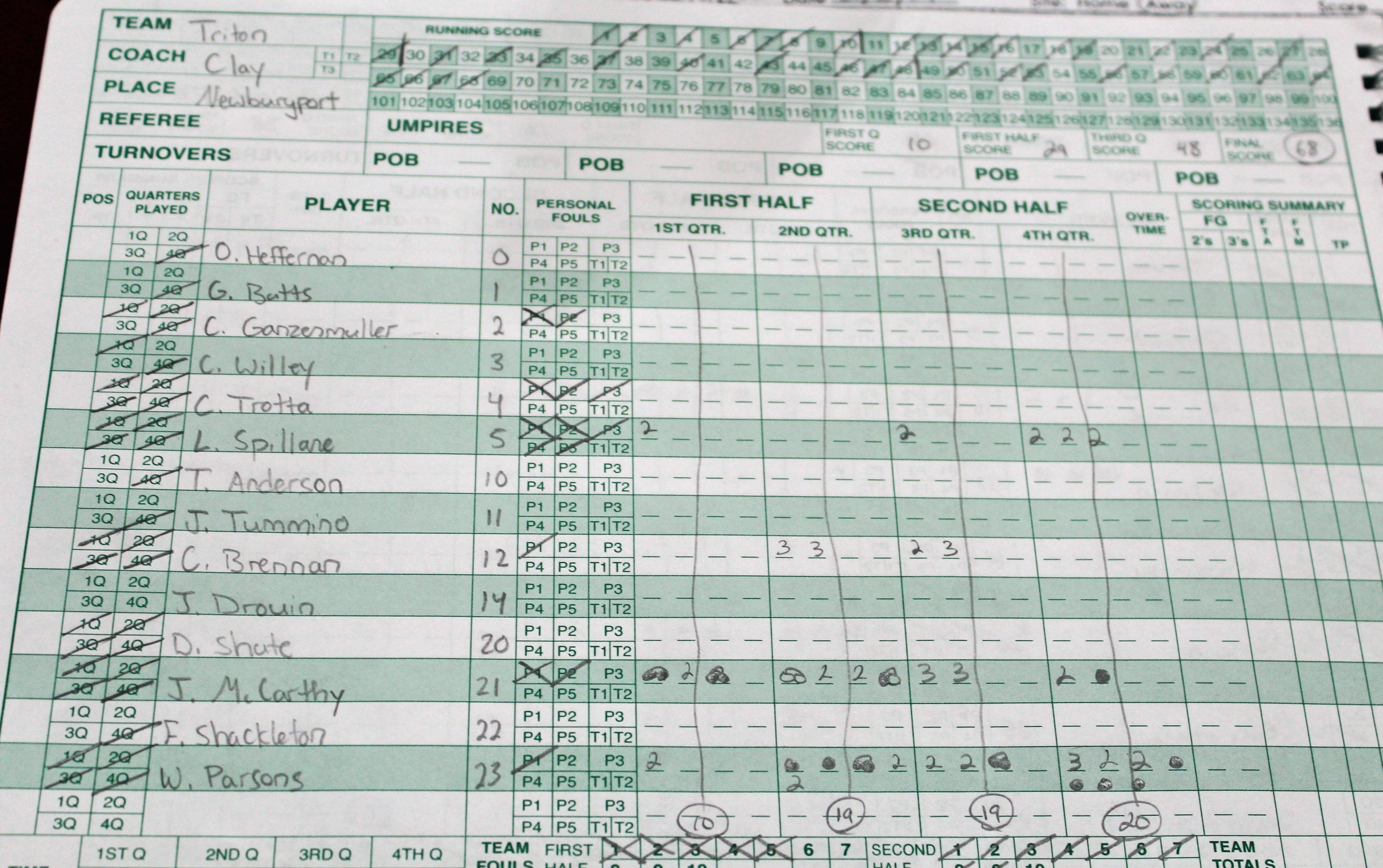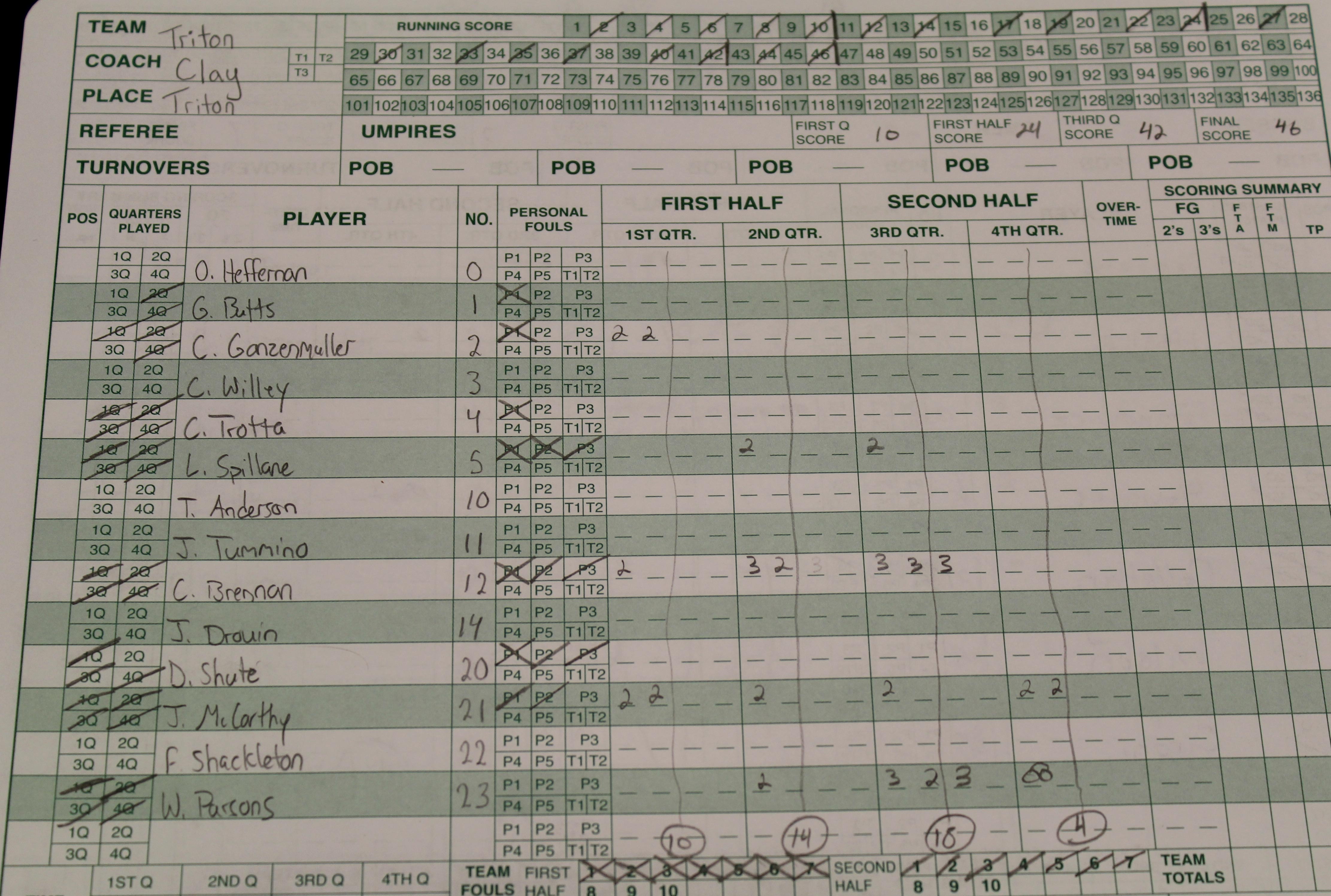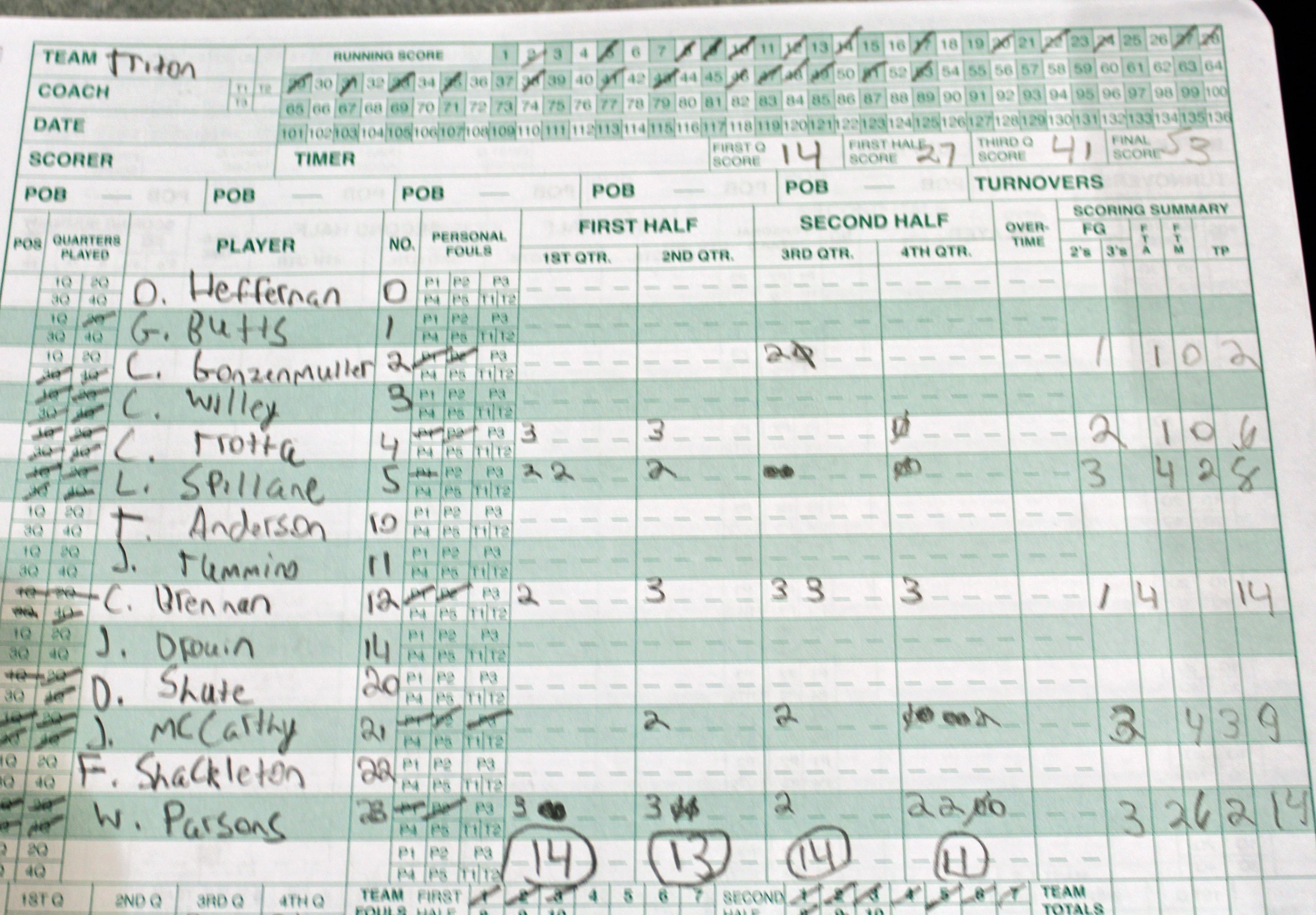 Triton was without point-guard Chris Trotta. Sophomores Dylan Shute and Gabe Butts gained extra floor time as a result.