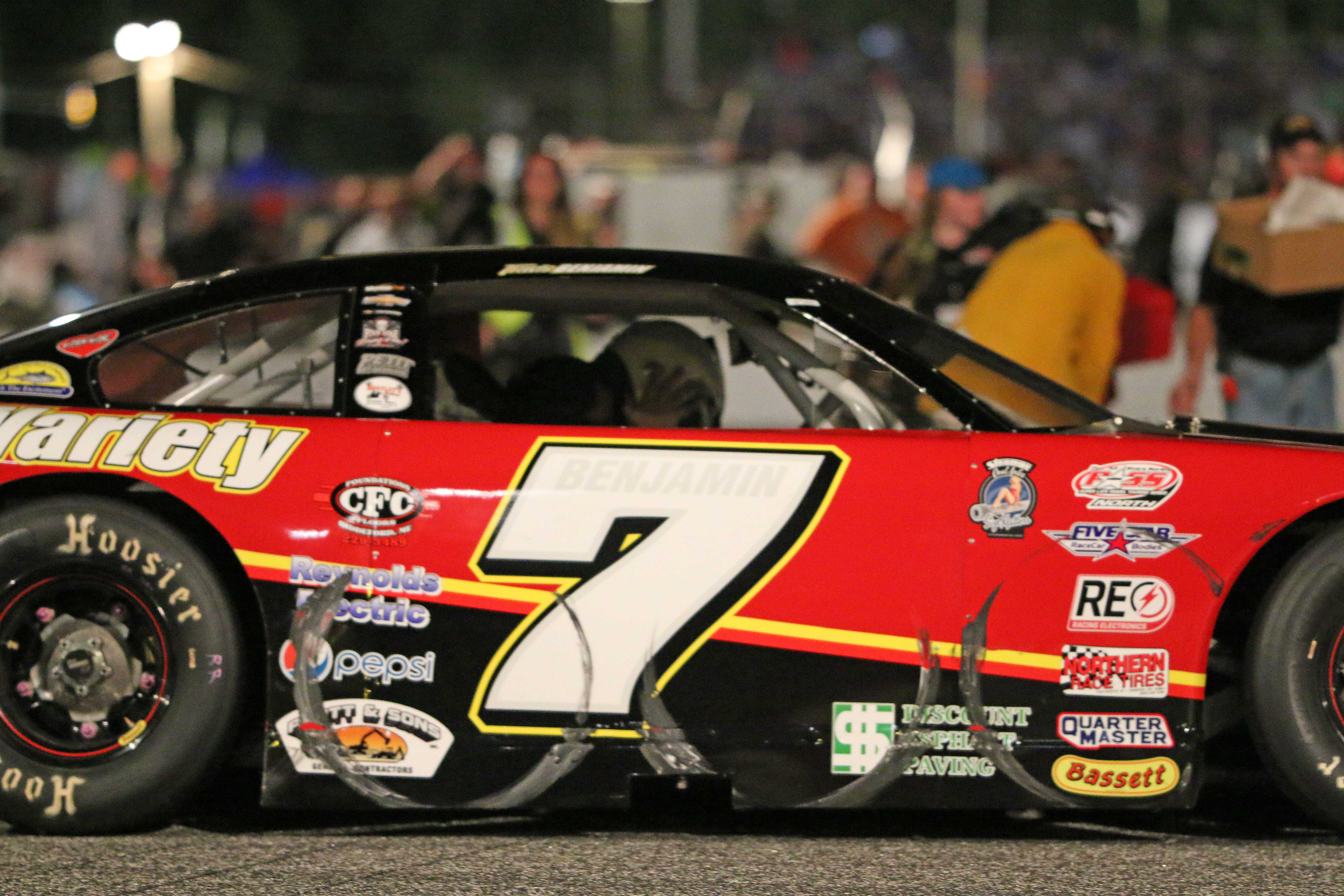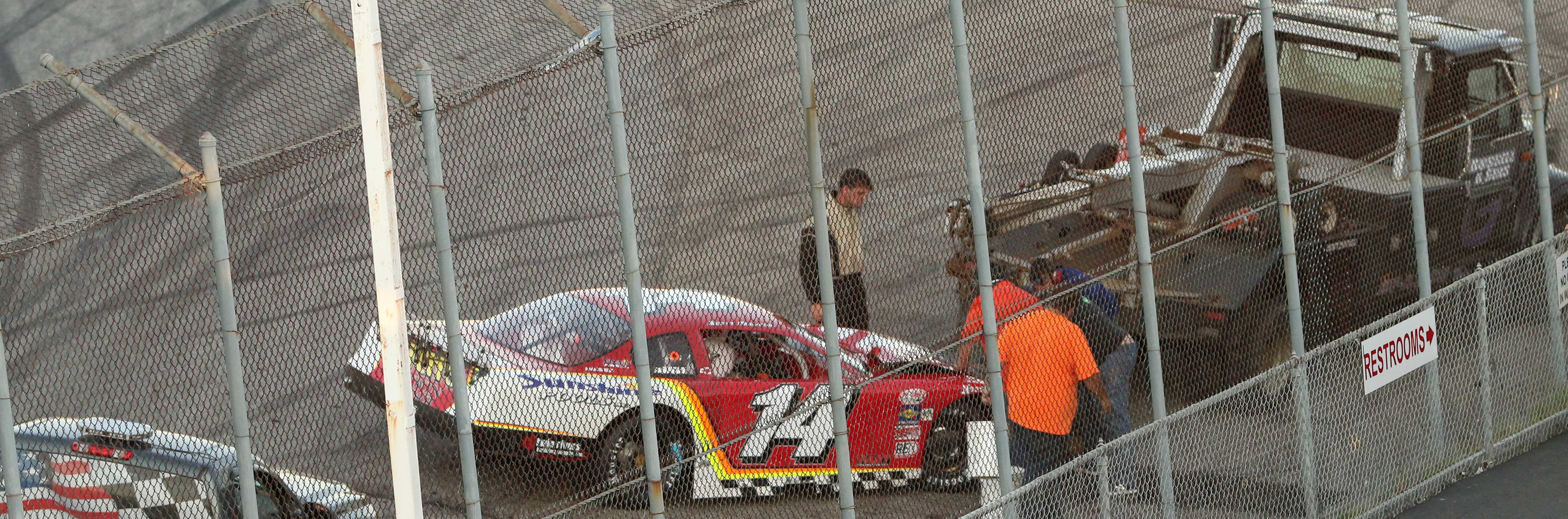 Cassius bumped with Eddie MacDonald (6th) battling for the lead and ended up with a nice dent on the right side of his car.