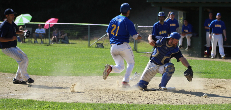 Anyone at Eiras Field will tell you that the seventh had its moment of drama as Mariners’ second batter Brett Cahill hit a long out to right that was close to home-run distance. In an earlier at-bat the ME catcher had doubled off the rightfield fence. There was a bit of an incoming breeze in the seventh inning and instead of tying the game, a putout was recorded by Rams rightfielder Justin Bolla.