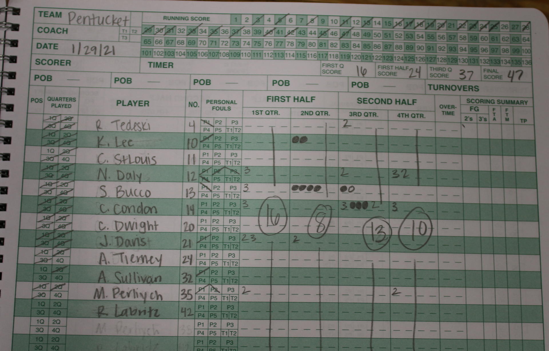 “Nick (Dupuis) had a very good game,” Coach Schruender added. “He’s not usually a scorer but he hustles and plays good defense.”