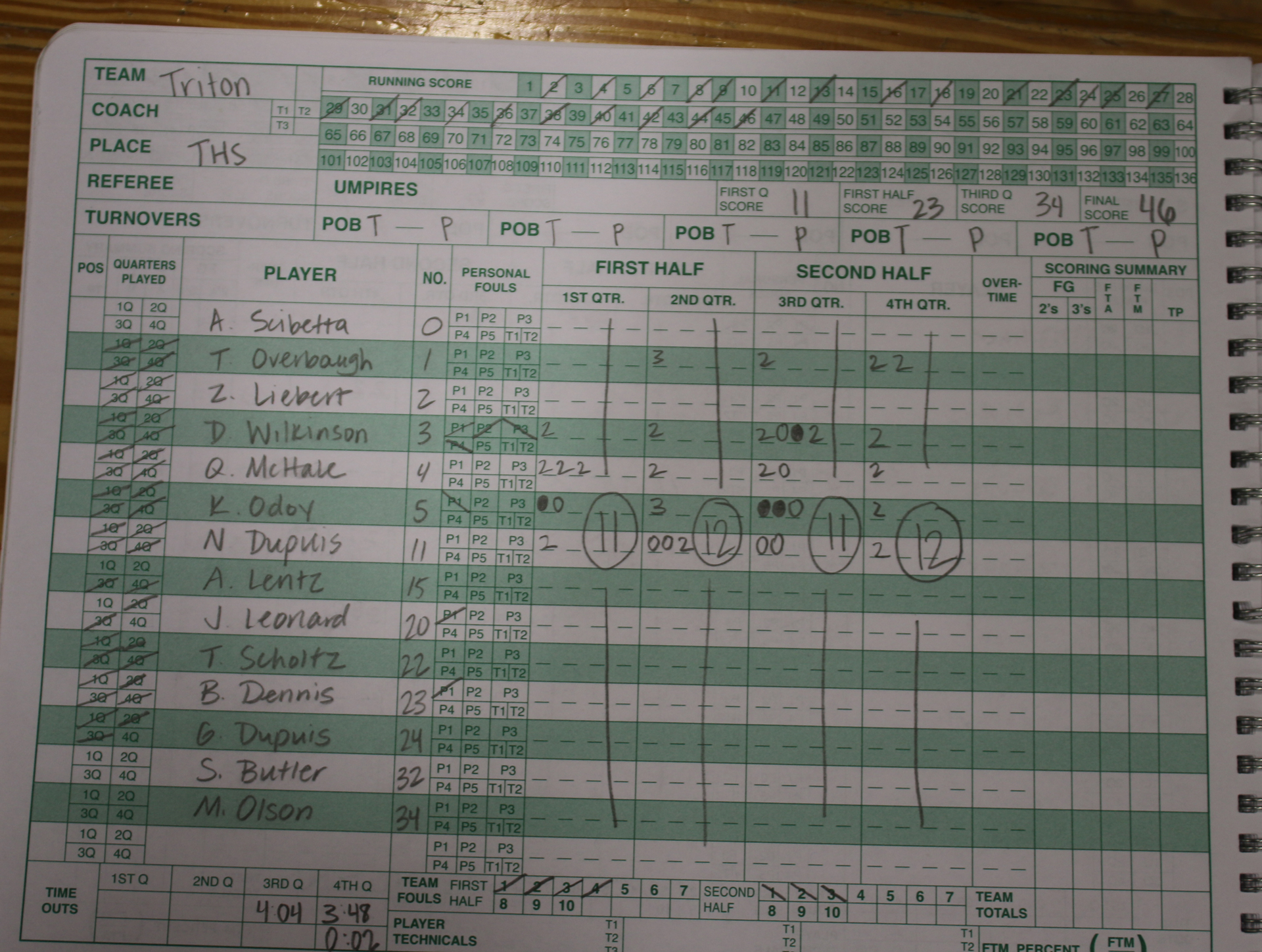 Triton had a four-point lead (20-16) with five minutes left in the second quarter. Over the next three minutes, the Vikings shut out the Sachems and went on an 11-0 run.