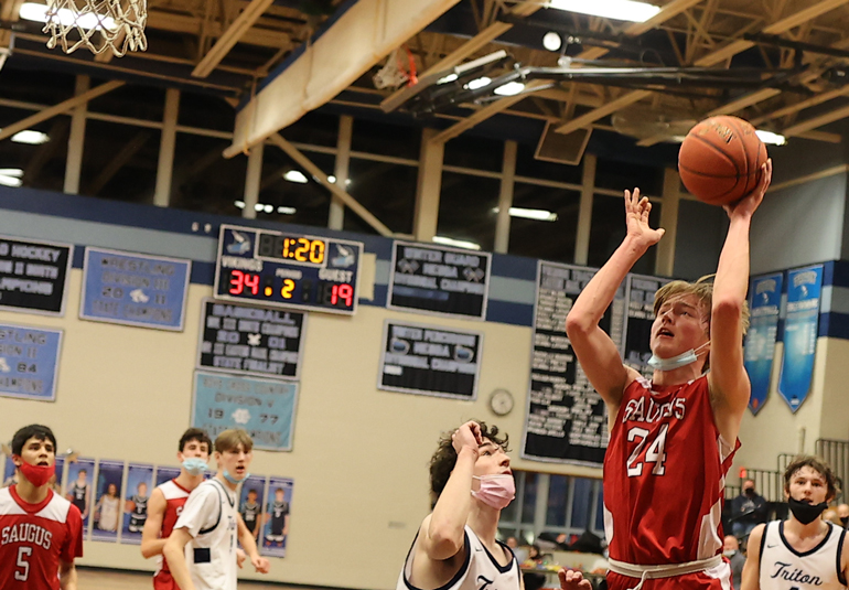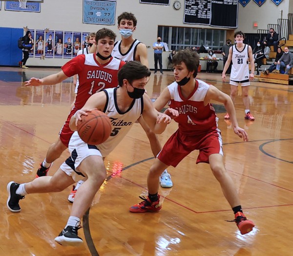 Saugus played a lot of zone defense, and with Triton’s quick passing there were open shots available. The Vikings totaled ten three-pointers.