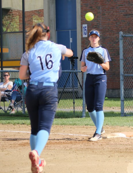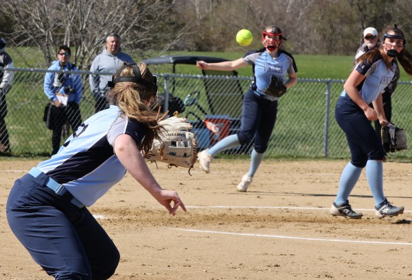 A key play occurred in the fifth inning. Newburyport had runners on second and third with two out. Emily Meleedy was at the plate. Pentucket opted to intentionally walk her which would load the bases. However, Molly LeBel’s attempt to finish off the intentional pass got beyond Pentucket catcher Ella Agocs. Olivia Skibbee, who was on third base, broke for home but Ella’s flip to Molly covering home erased the runner and ended the inning.