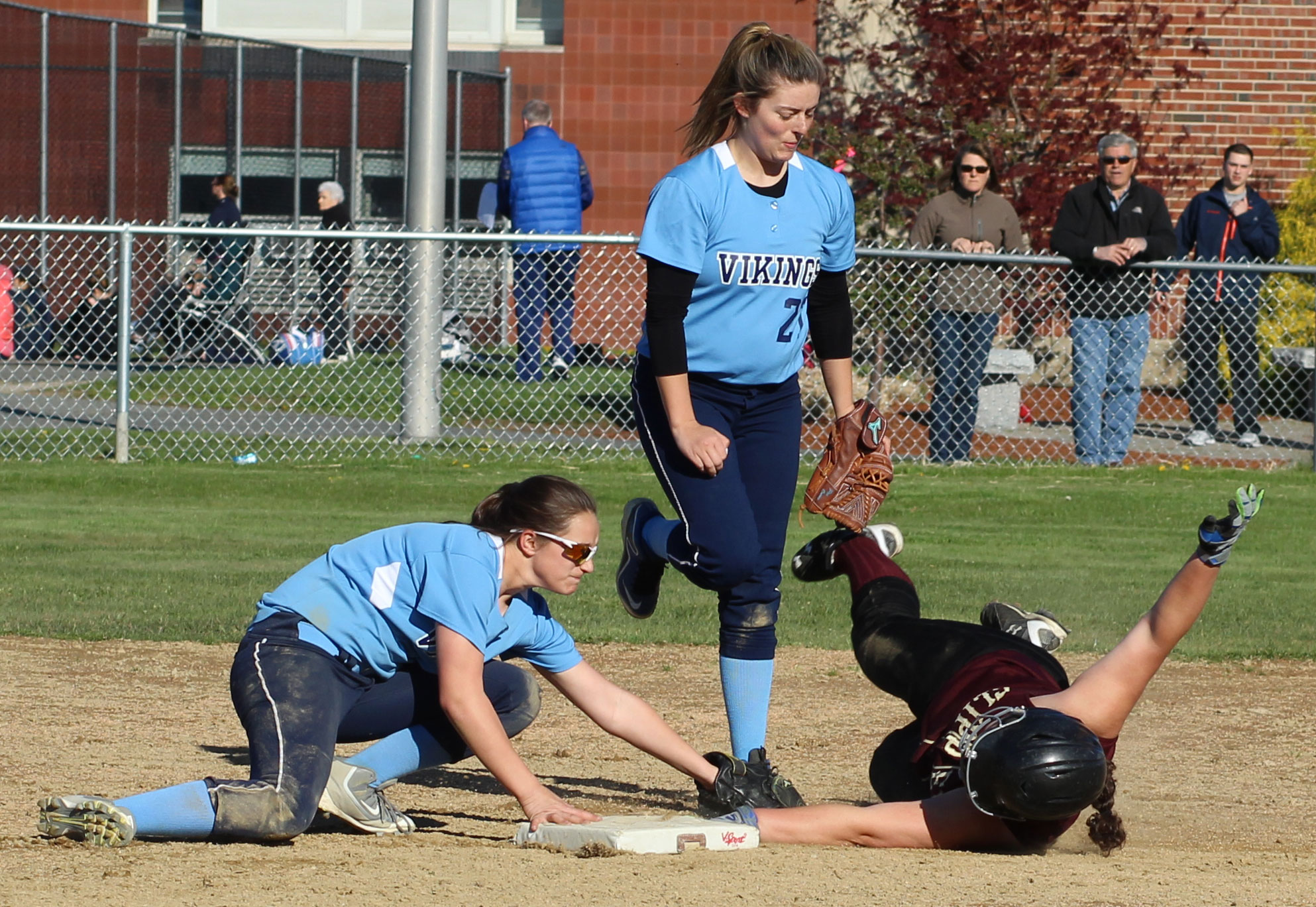 The visitors led 3-1 going into the Triton second. There the Vikings dropped seven runs on the Clippers. The Vikings had only two hits in the inning but a bad mix of walks, wild pitches, and errors helped Triton. Key hits by Zoe Cesati and Julia Hartman drove in runs. Stephanie Gleason came on to relieve NHS starter Paige Gouldthorpe and pitched the rest of the game.