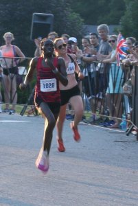 I have always positioned myself one mile from the start near the Cushing Museum. The top finishers always show themselves by that point. Case in point was today’s 5K. UMass Amherst graduate Jeffrey Seelaus was in front there. Same for Williams grad Yvonne Bungei among the women.