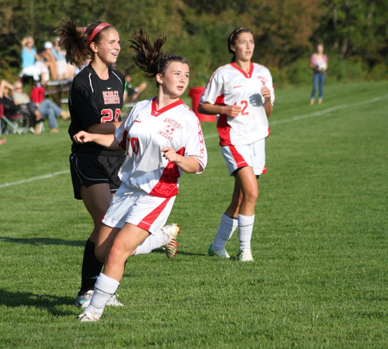 The fifth, however, started ominously for Newburyport as errors by 3B Meghan Stanton and pitcher Vicki Allman gave Amesbury baserunners they shouldn’t have had. Five of the next six Indians’ batters had hits, including a double (Amanda Schell), triple (Cassie Schultz), and a homer (Ashley Valme), and the home team had seven runs and the dreaded big inning Newburyport wanted to avoid.