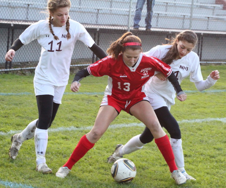 And they did, until the bottom of the fifth inning. The Indians lead was only 2-1 and NHS starter Vicki Allman had retired eleven straight Amesbury hitters.