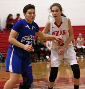 The Hallinan twins (Avery and McKenna) brought energy, points, and defense. The two freshmen helped carry the scoring load for the Indians in the first half.