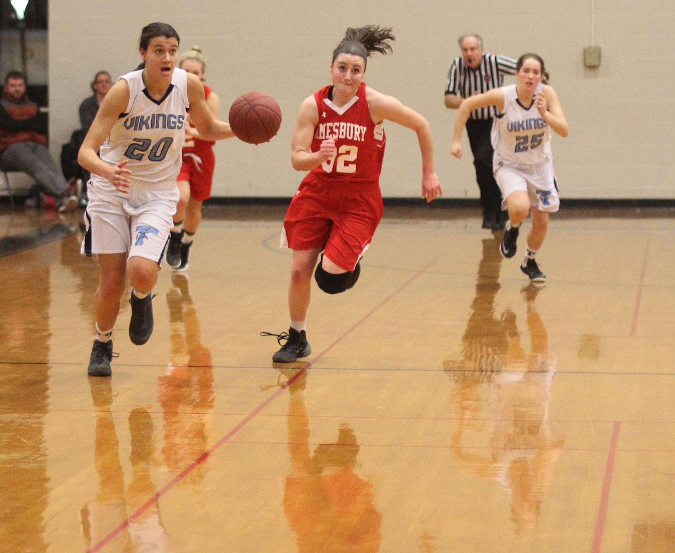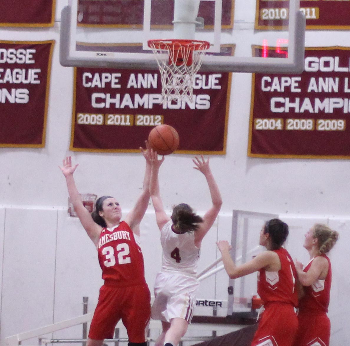 Amesbury had a six-point lead (23-17) with two minutes left in the half but a three by freshman Riley Hallahan and a layup by Grace Klonsky and Lynnfield was back tight, 23-22, at the half.