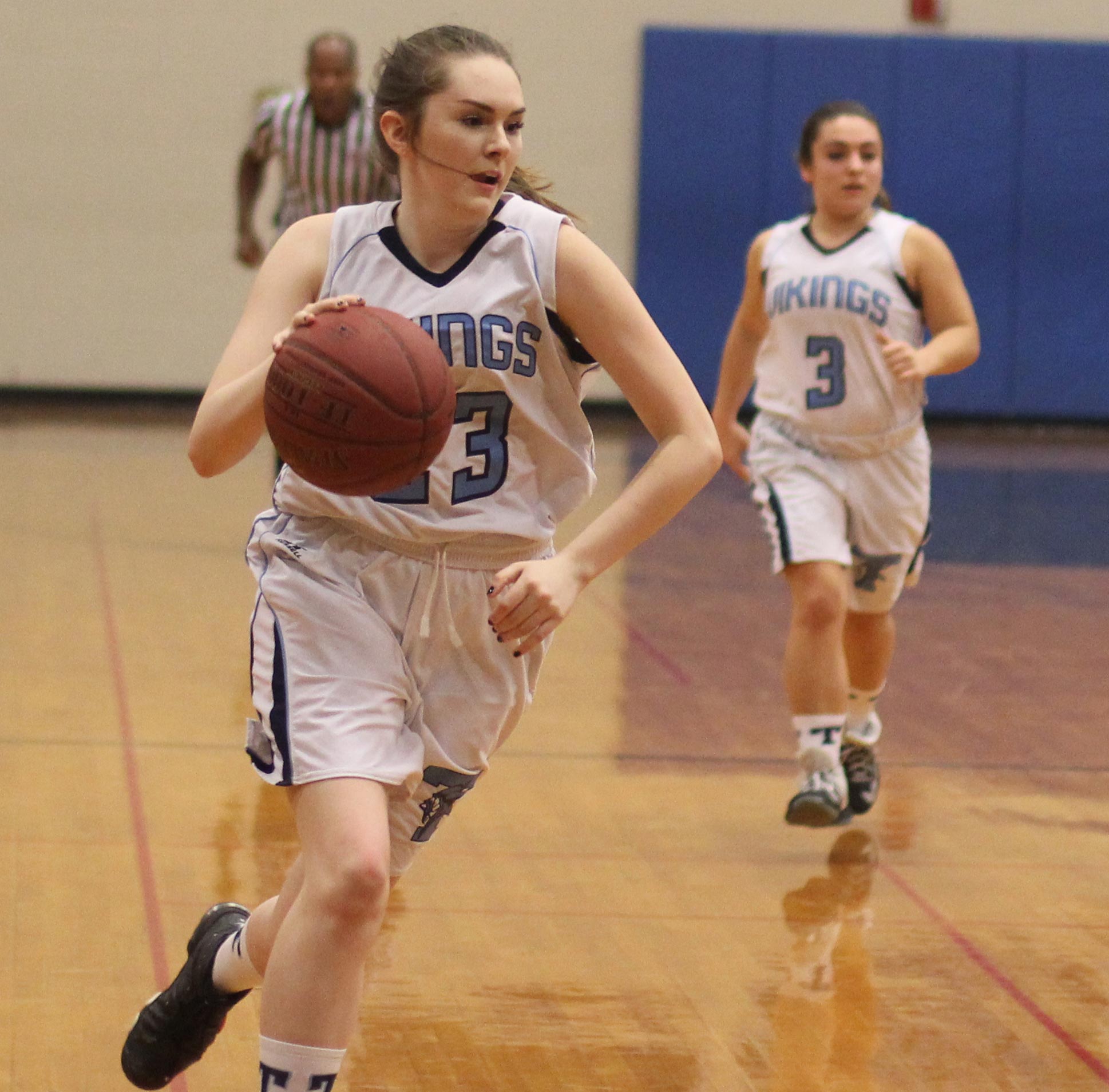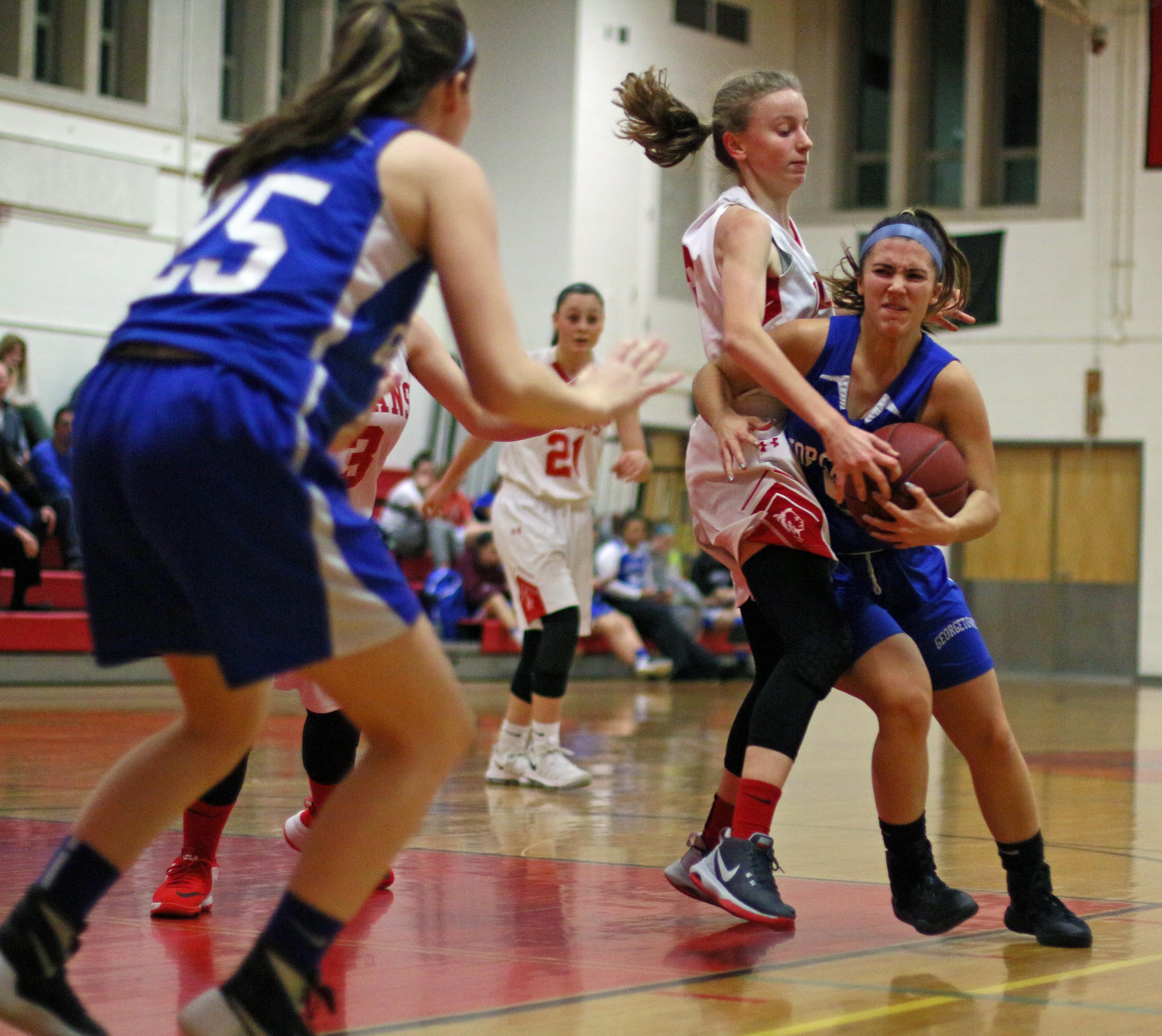 I was impressed with the ball-handling of sophomore Grace Klonsky. Several times she took the ball the full length of the court for a score.