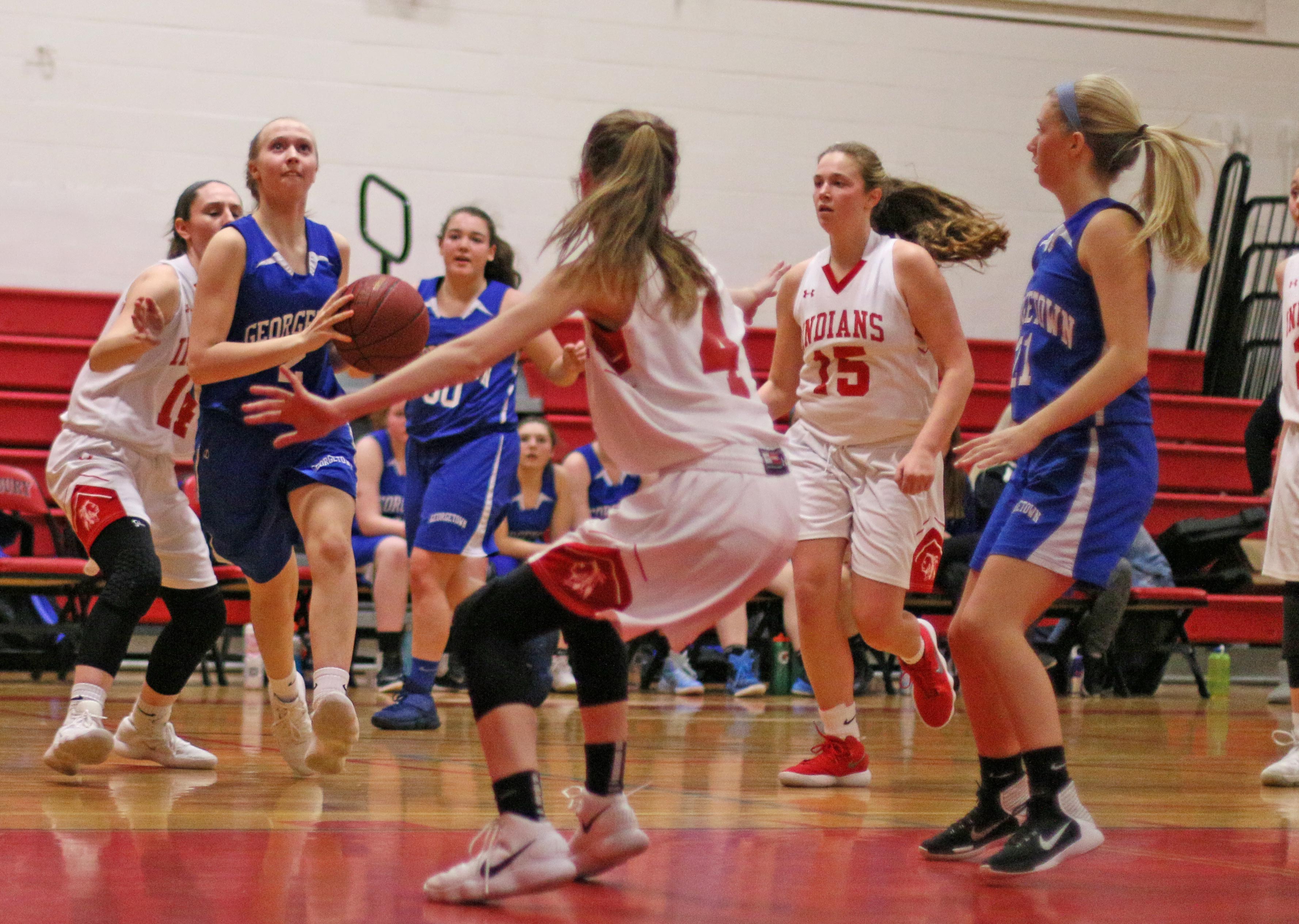The Hallinan twins (Avery and McKenna) brought energy, points, and defense. The two freshmen helped carry the scoring load for the Indians in the first half.