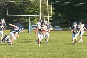 The visiting Lisbon Greyhounds had, what appeared to be, a comfortable 22-0 lead over the home Fryeburg Academy Raiders two minutes into the second half.