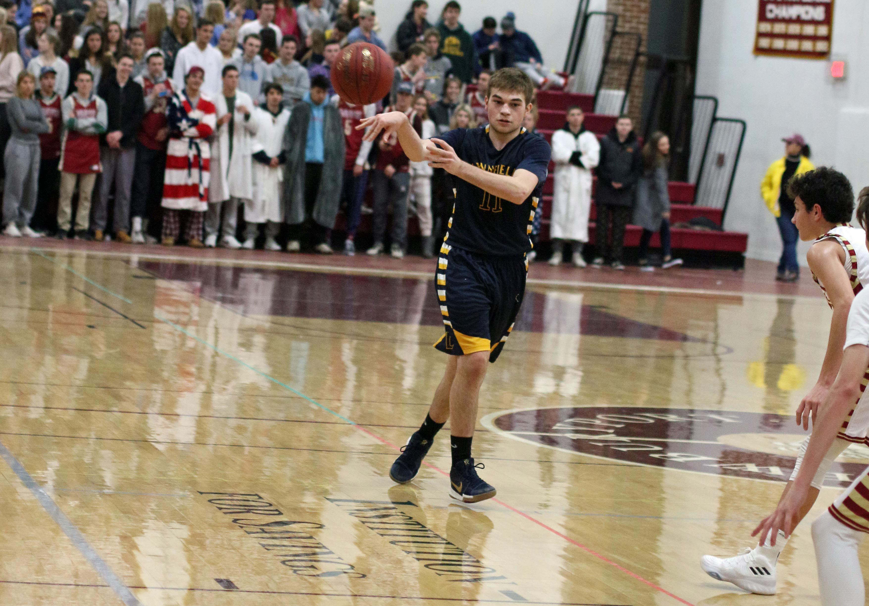 Casey got those 15 points in the first six minutes of the second quarter giving NHS a 27-20 lead. However, the last two minutes belonged to the visitors. A layup be Cam McCullough and a triple and two free throws by Adrian Torres earned Dracut a halftime tie.