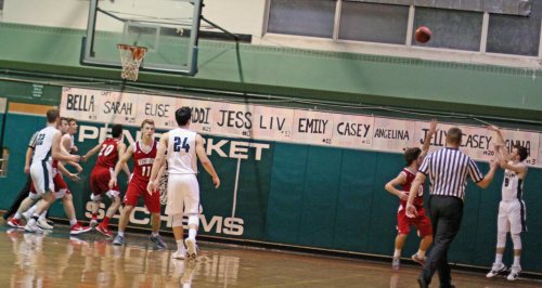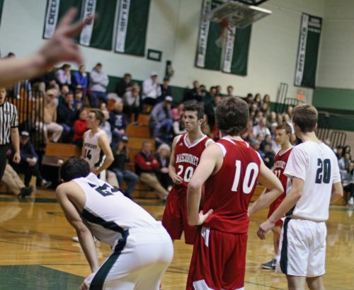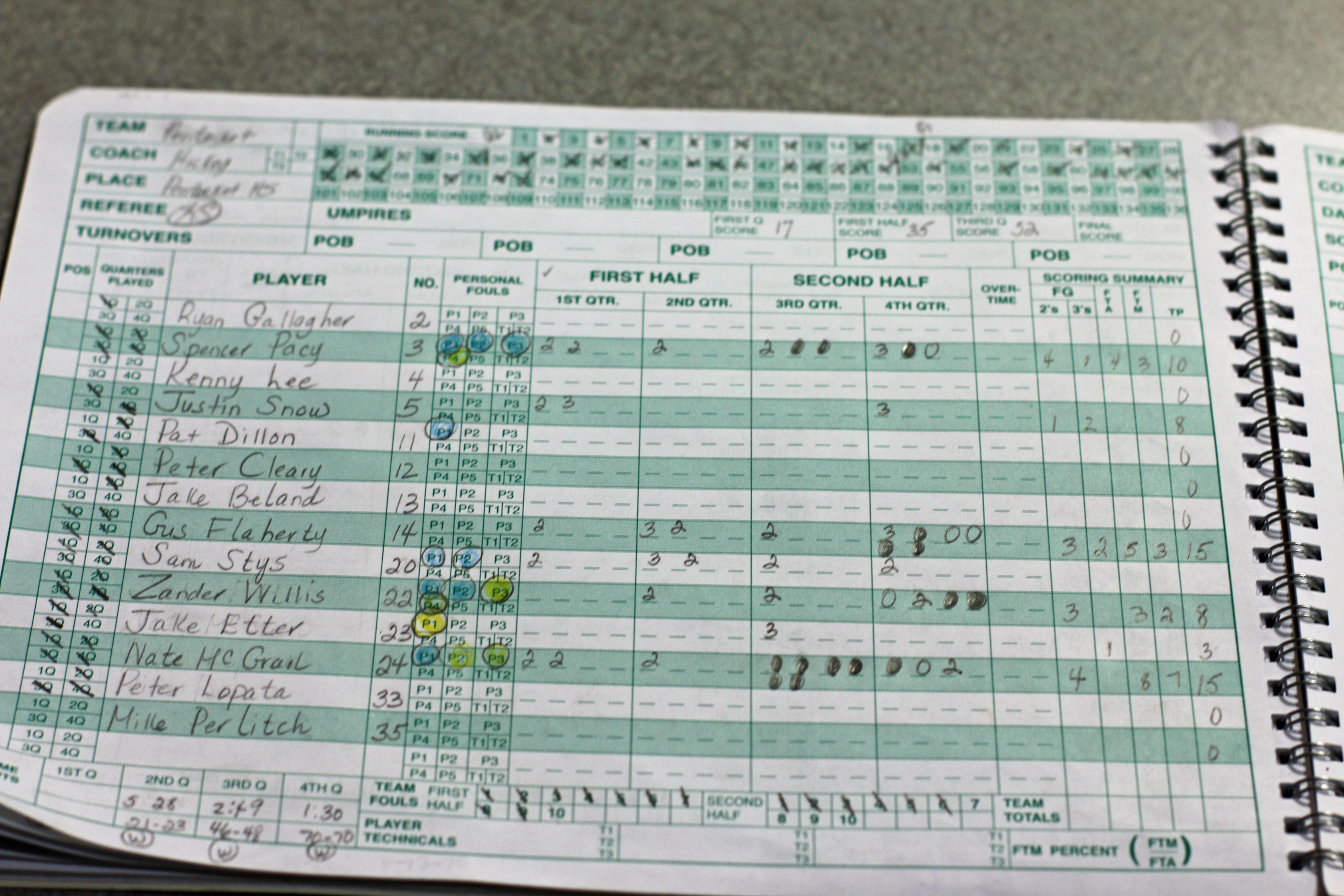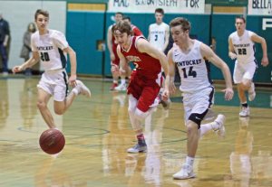 Spencer Pacy (four free throws), Peter Cleary (two free throws), and Gus Flaherty (layup assisted by Sam Stys) were involved in Pentucket’s good minute of offense/defense.