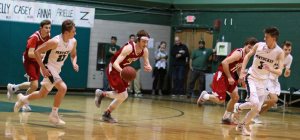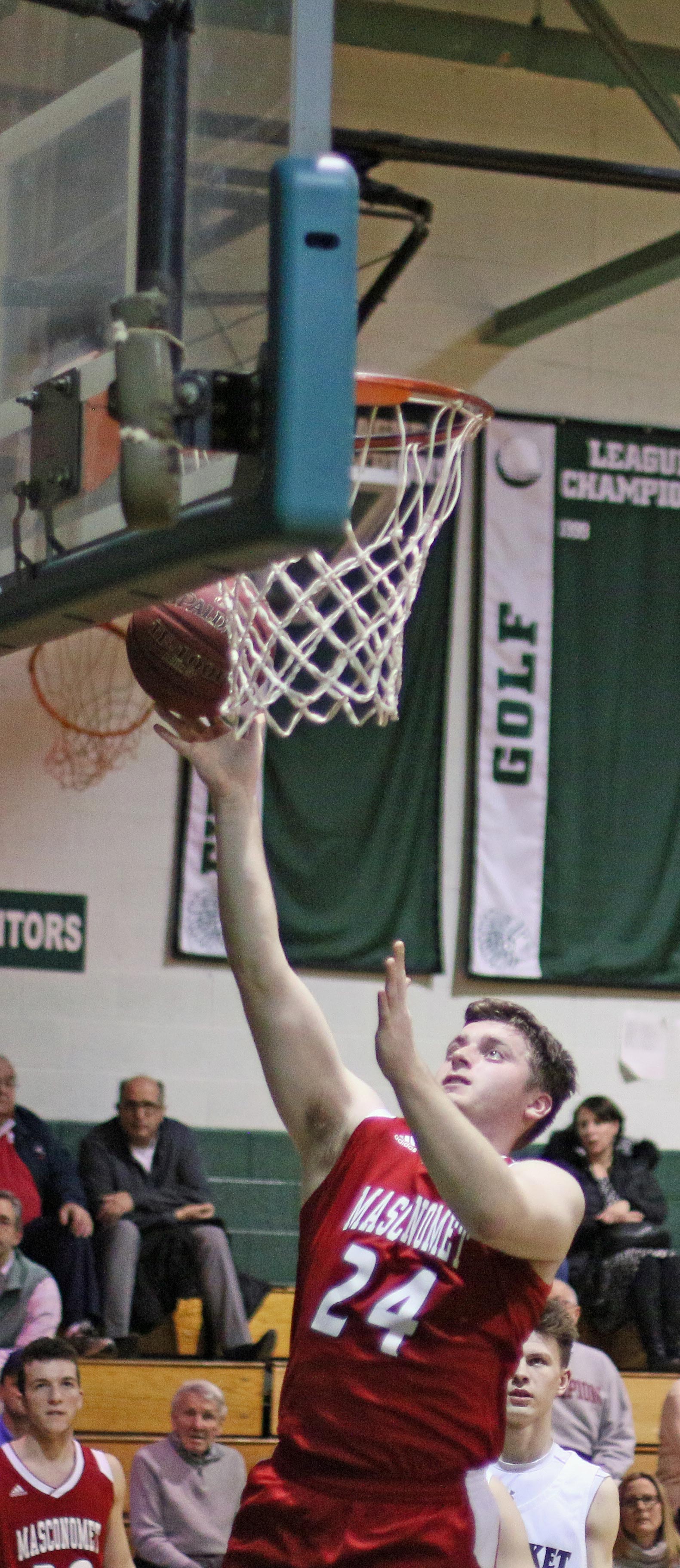 The Sachems broke a 9-6 game open with a 14-2 segment that stretched into the second quarter. Jake Etter had a big part in the breakaway notching eight points. He had a triple and added three straight free throws when he was fouled on an attempted three.