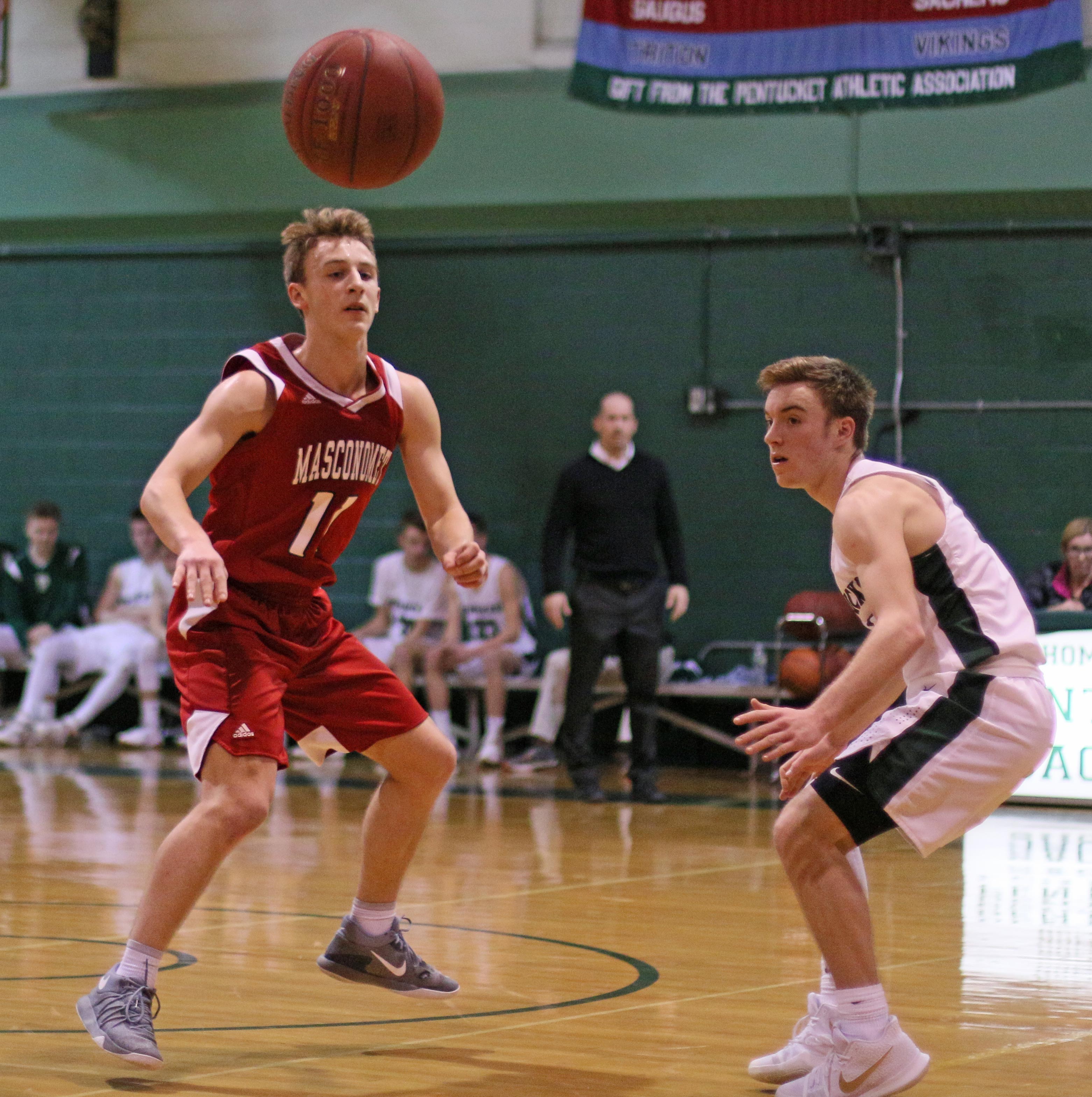 Junior Jake Etter led Pentucket with seventeen points, collecting thirteen of them in the breakaway first half.
