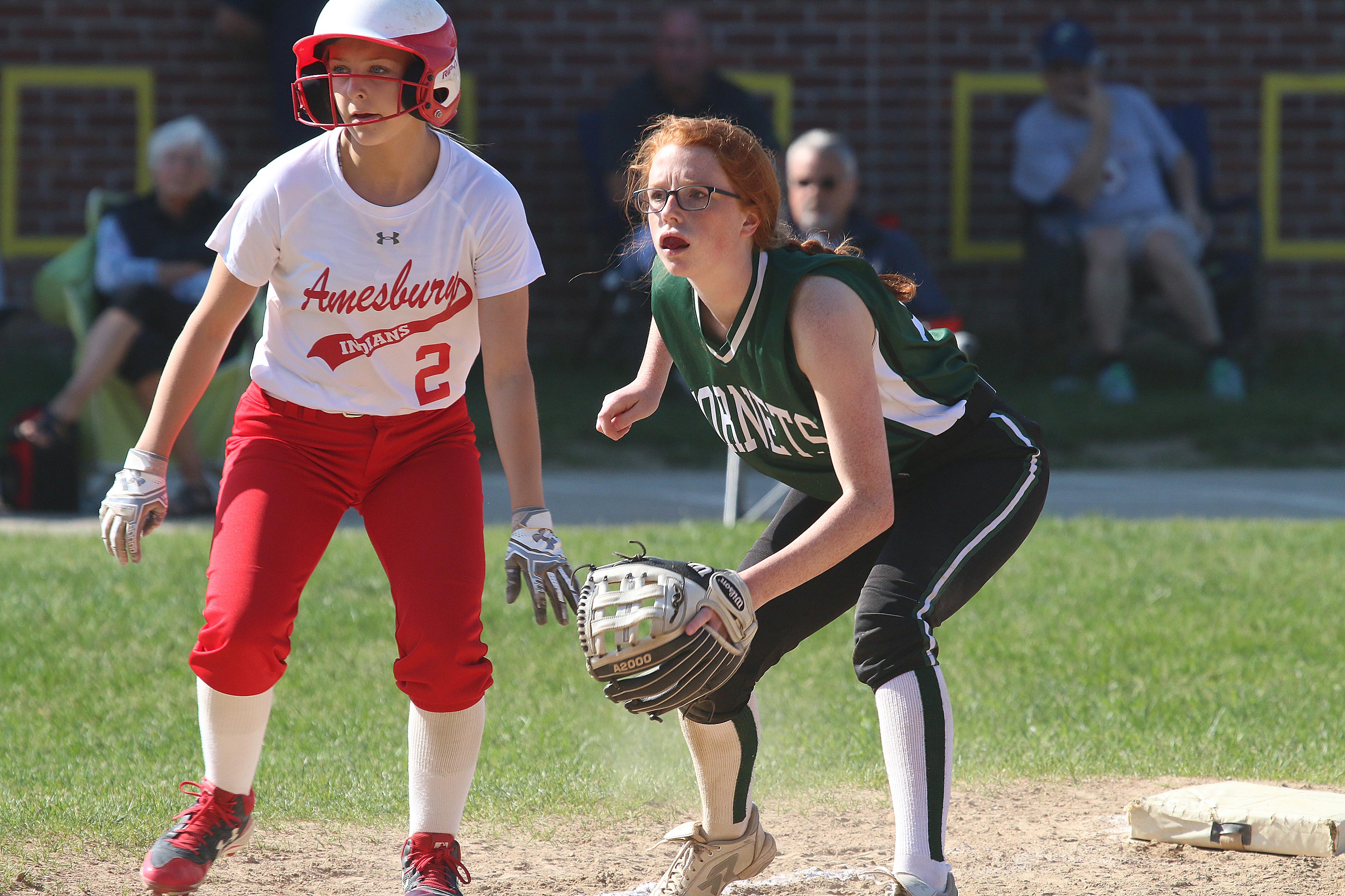 But today the Hornets had their chances. This game went into the sixth inning with Amesbury holding on to a very slim 3-2 lead. “The way the game was going was making me nervous,” recalled Coach Waters.