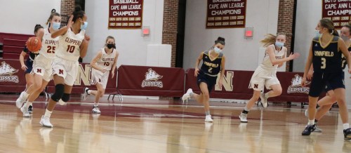 Against Ipswich, Newburyport struggled with the visitor’s zone defense.  Not tonight.  Plenty of good passes including cross-court ones that turned up high-percentage looks.  Even on misses, the Clippers size and positioning resulted in nine rebound baskets.