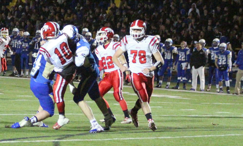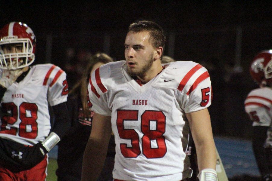 With the score now tied, Masuk took a huge chance on 4th down deep in their own territory. Coach Lato said afterwards that, “he saw the momentum changing and wanted to stop it.” Keeping a drive alive at the Masuk 34 on a 4th-and-one seemed do-able after a great first half, but after a timeout, an inside run was stopped cold.