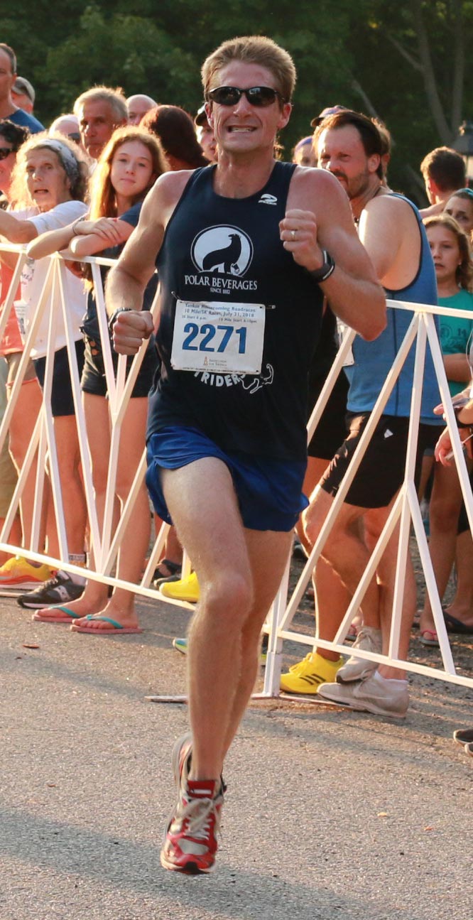 St. John’s Prep math teacher Nicholas Denari was poised behind Triton grad Bryan Popp at Cushing but moved on to take second at the finish.